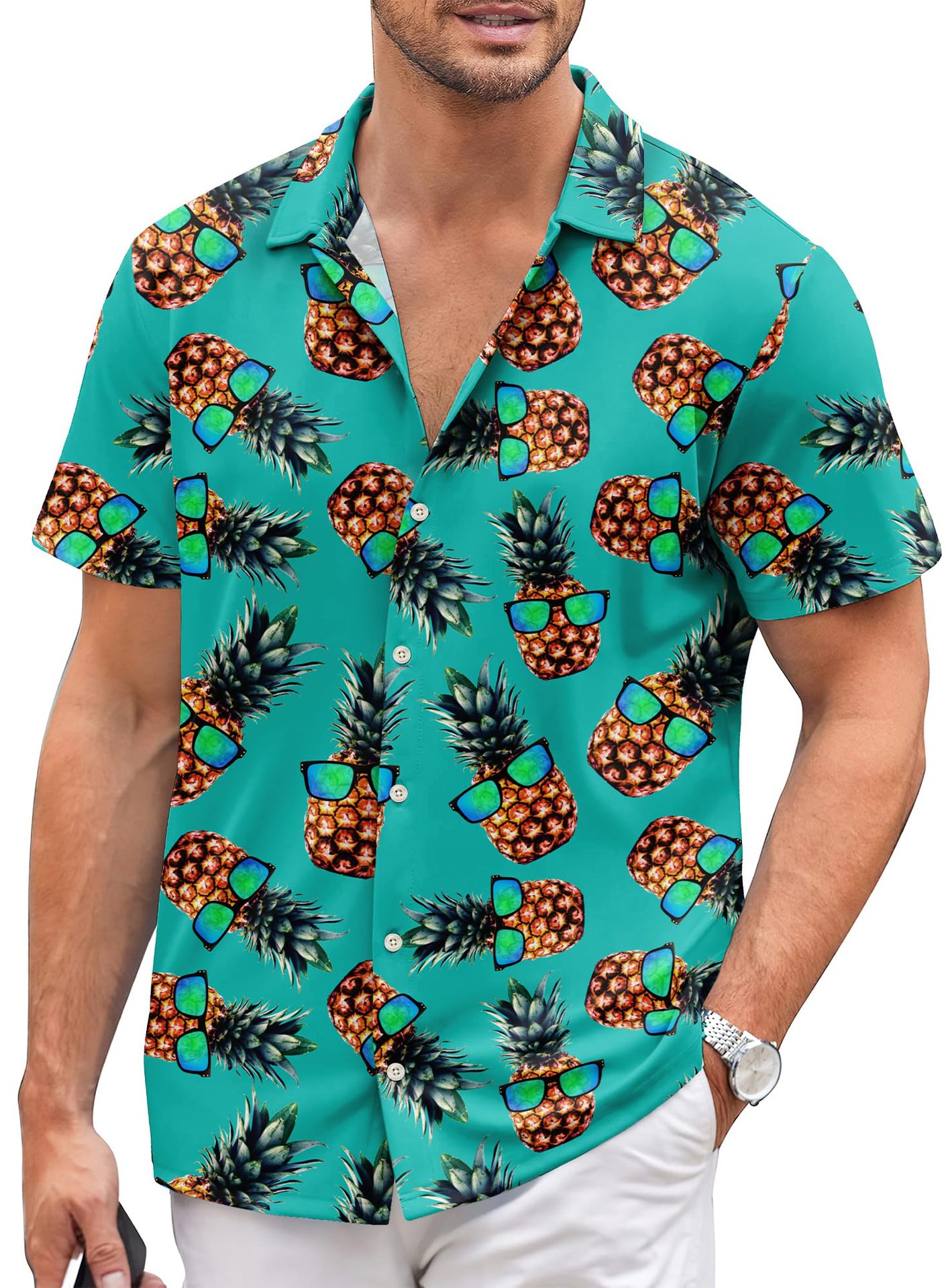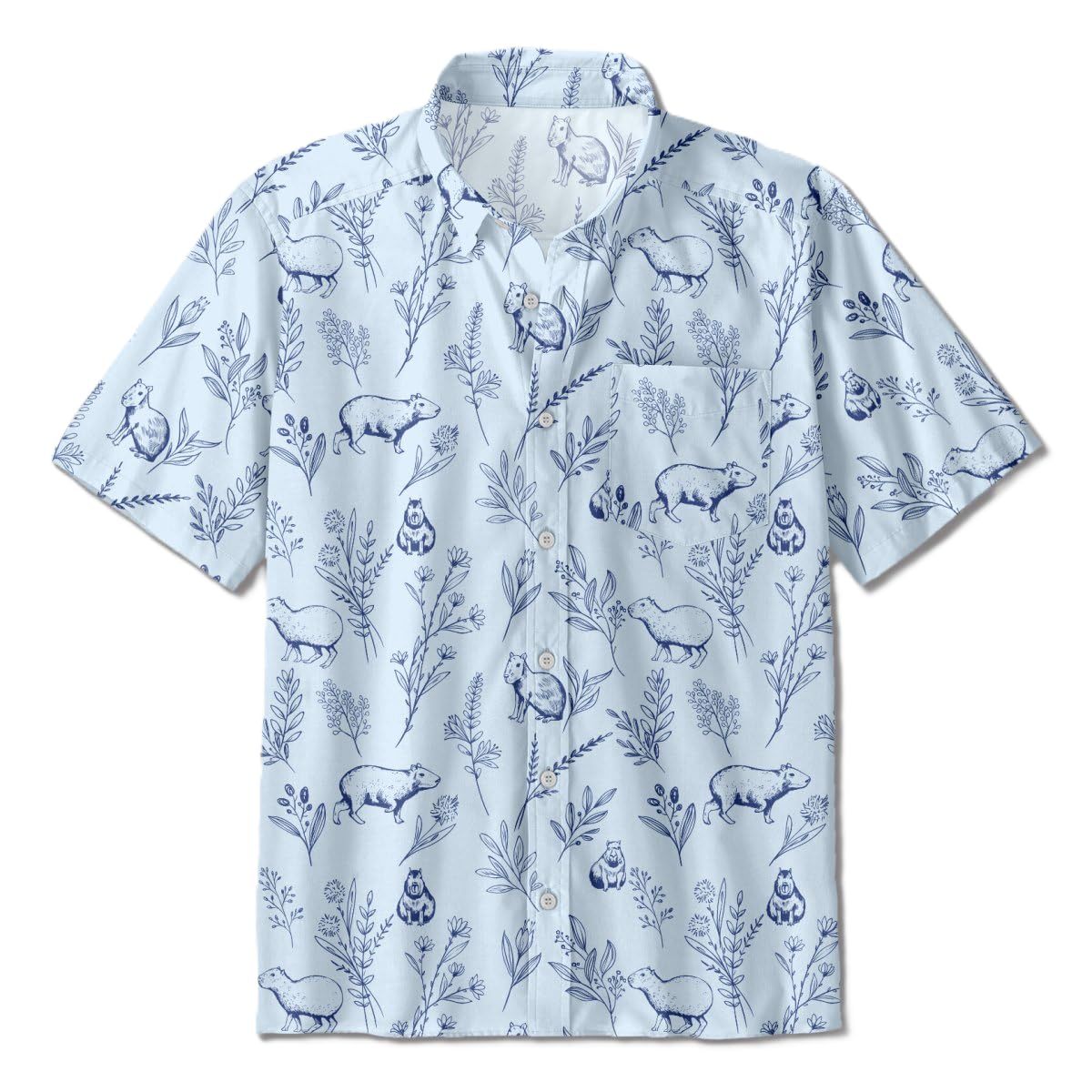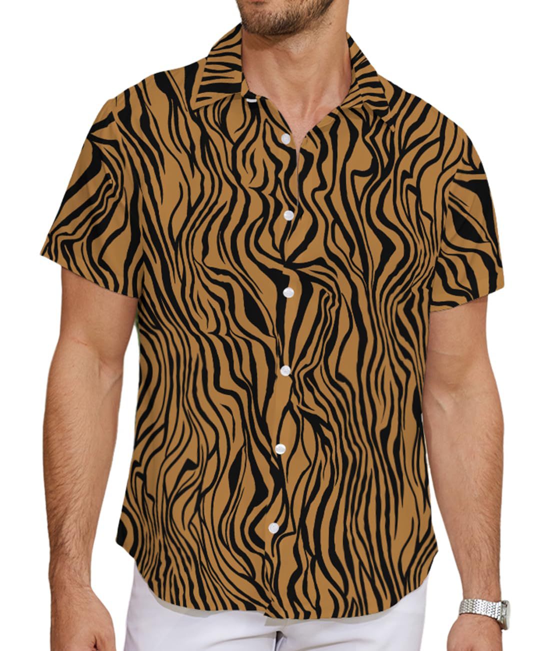 欧美跨境新品男士短袖印花衬衫3D印花短袖衬衫夏威夷印花衬衫