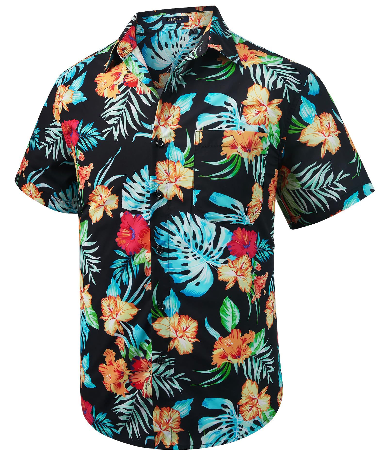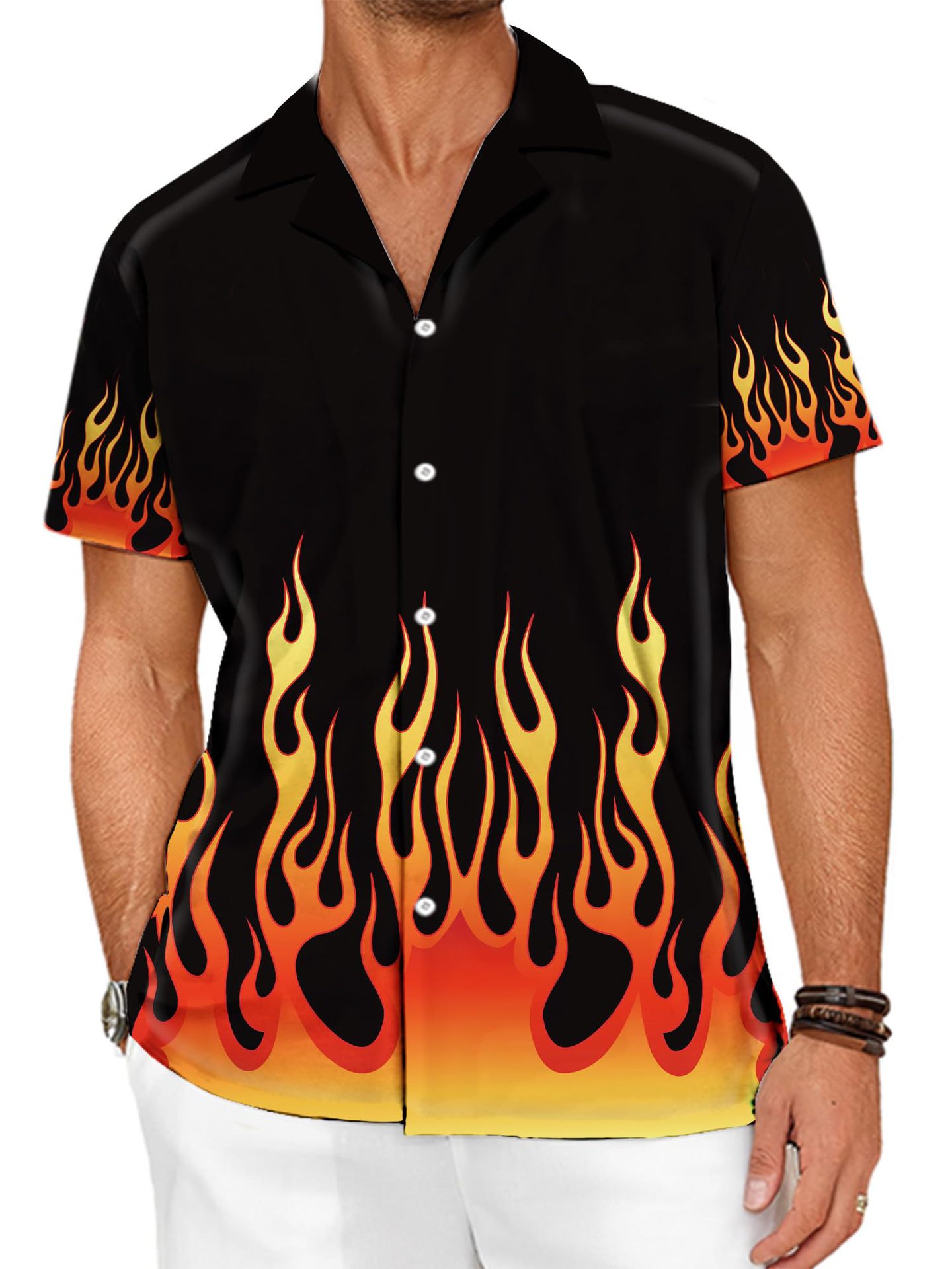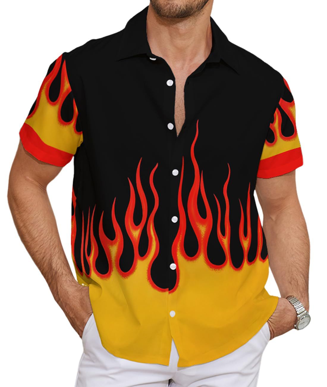 欧美跨境新品男士短袖印花衬衫3D印花短袖衬衫夏威夷印花衬衫
