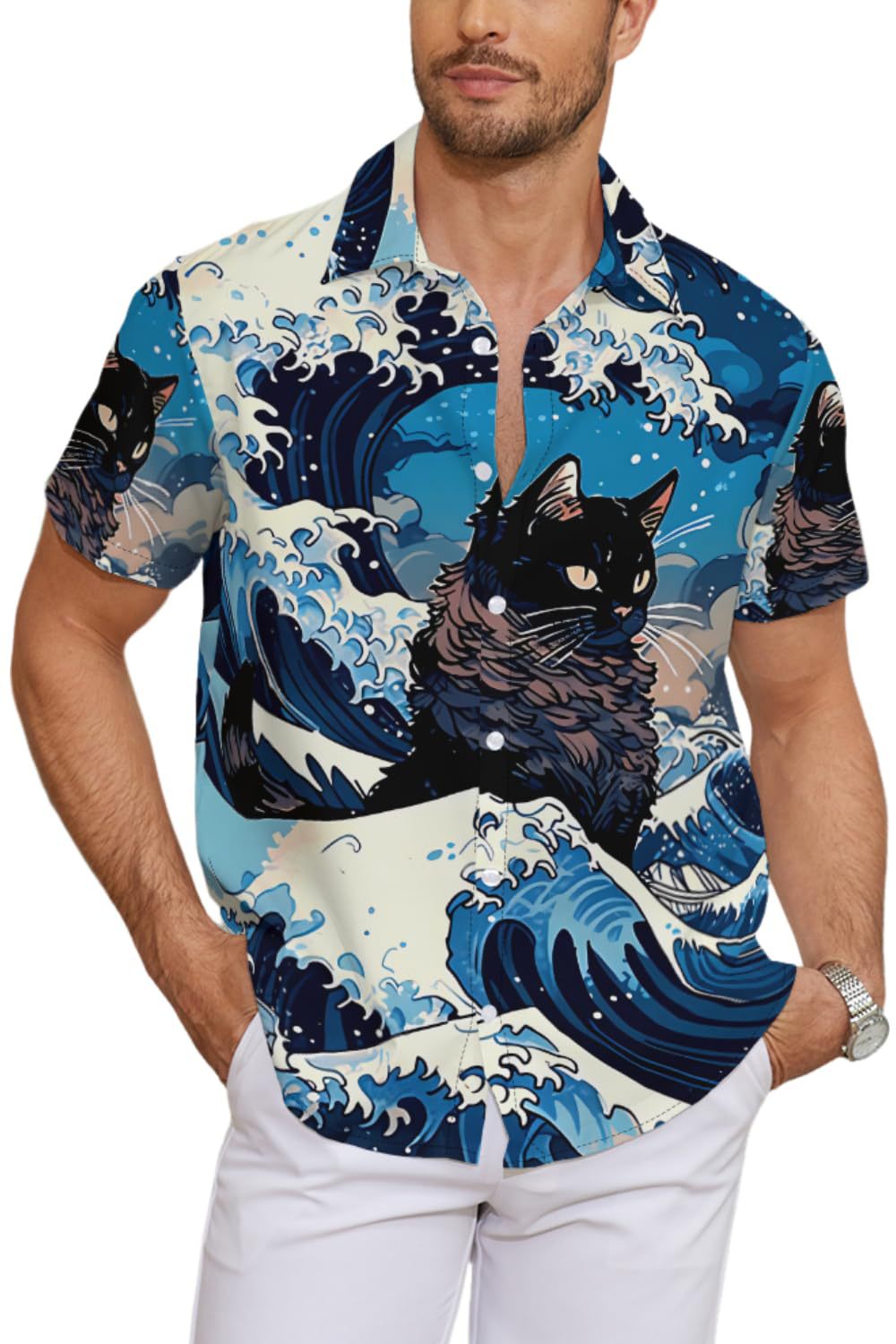 유럽과 미국의 국경 신제품 남성 반팔 인쇄 셔츠 3D 인쇄 반팔 셔츠 하와이안 인쇄 셔츠