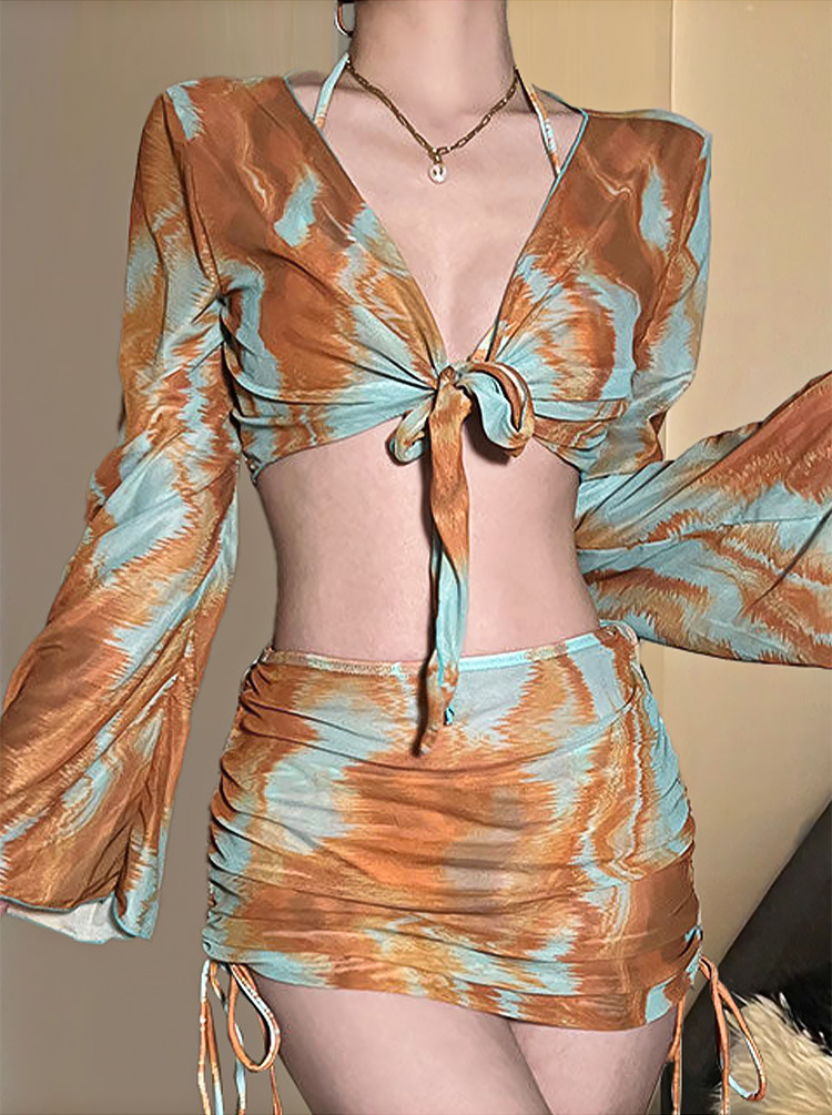 새로운 수영복 여성 섹시 비키니 분할 3 피스 세트 슬림 살포 커버 플랫 코너 해변 휴가 수영복 패션
