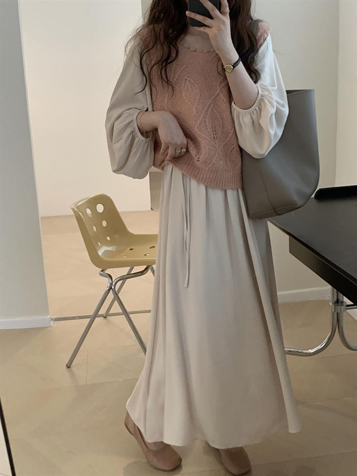 여자 가을 한국 긴 무릎 길이베이스 스커트를 원피스 오버 사이즈 300 진지방 고급 기질스토어 가기