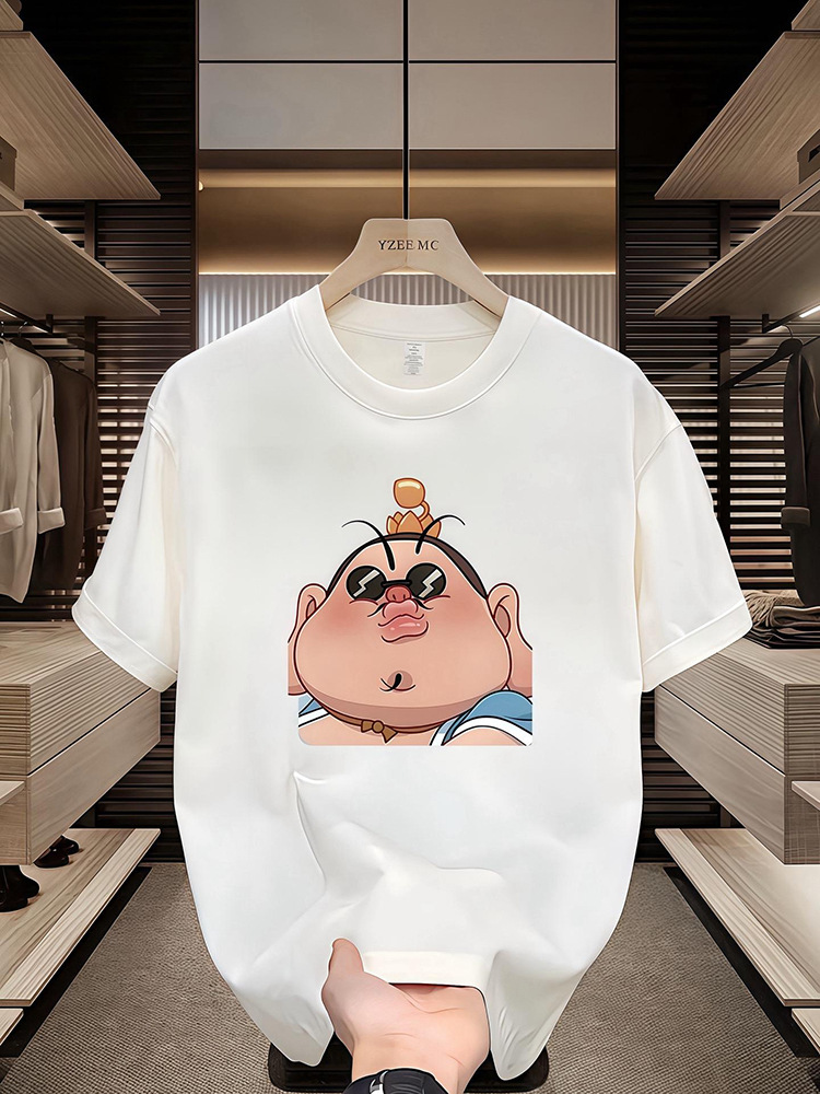 2025 봄과 여름 전국 패션 새로운 오리지널 하이 스트리트 루즈 반팔 티셔츠 남성용 화이트 올 매치 의류스토어 가기