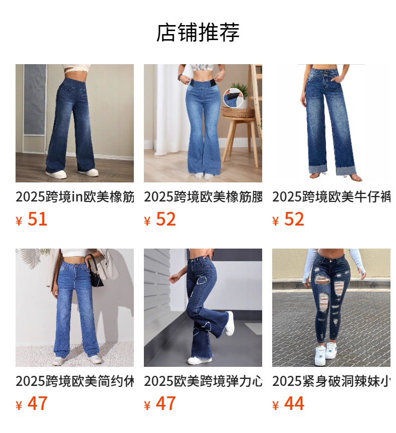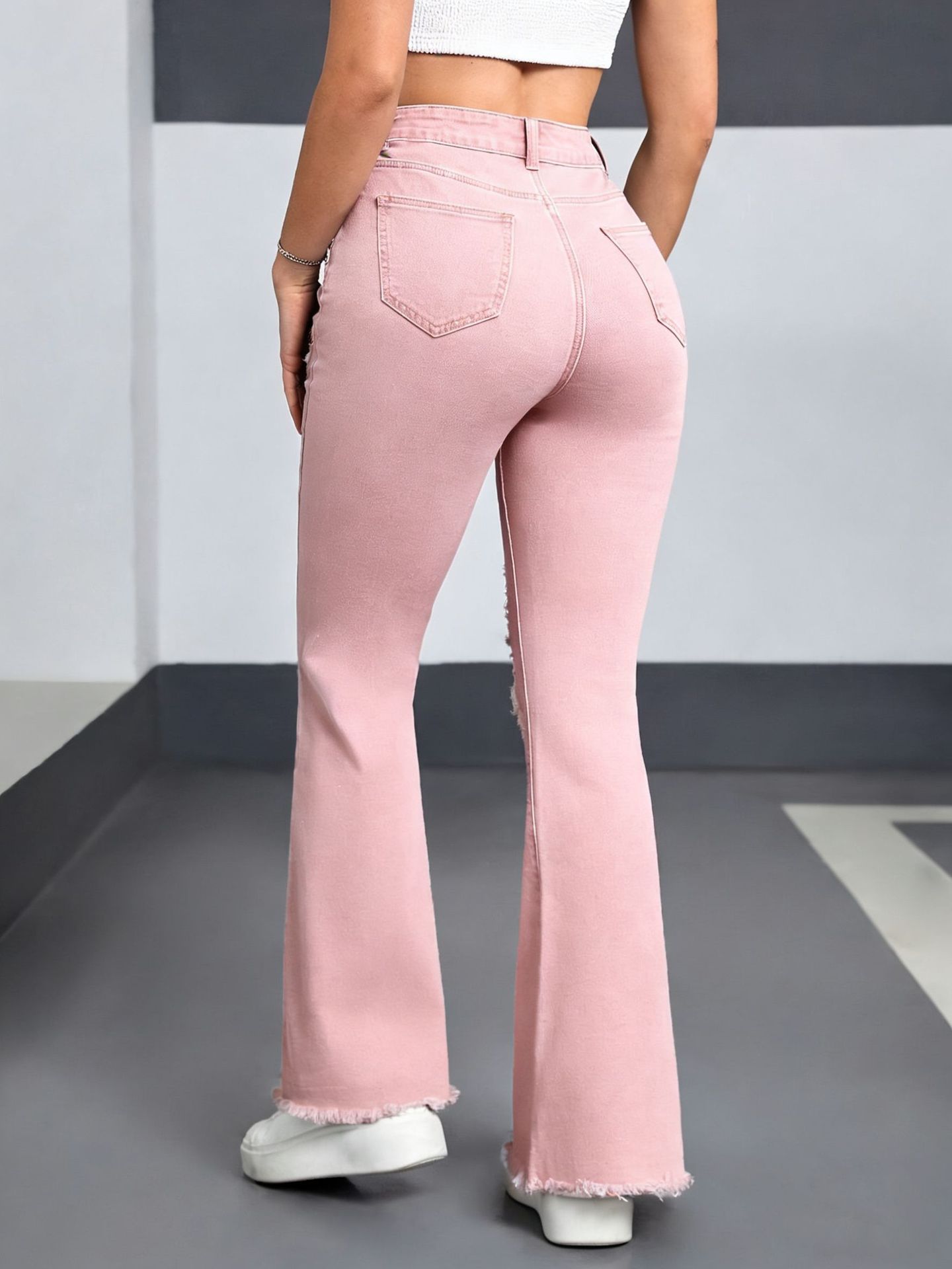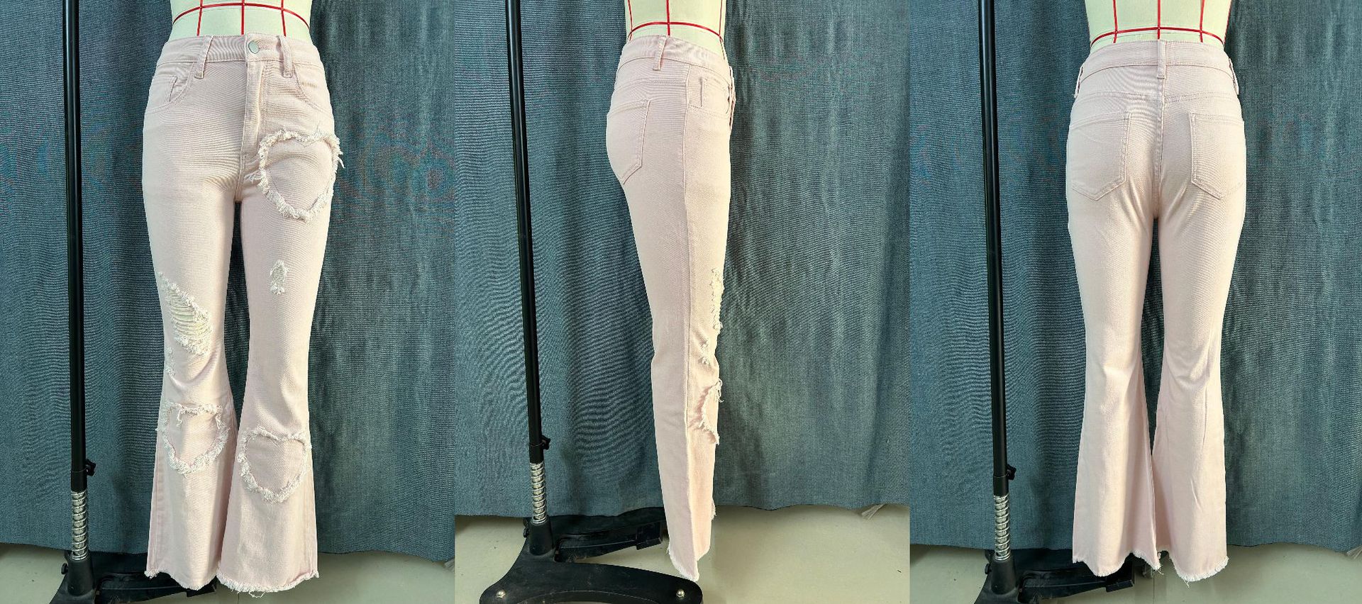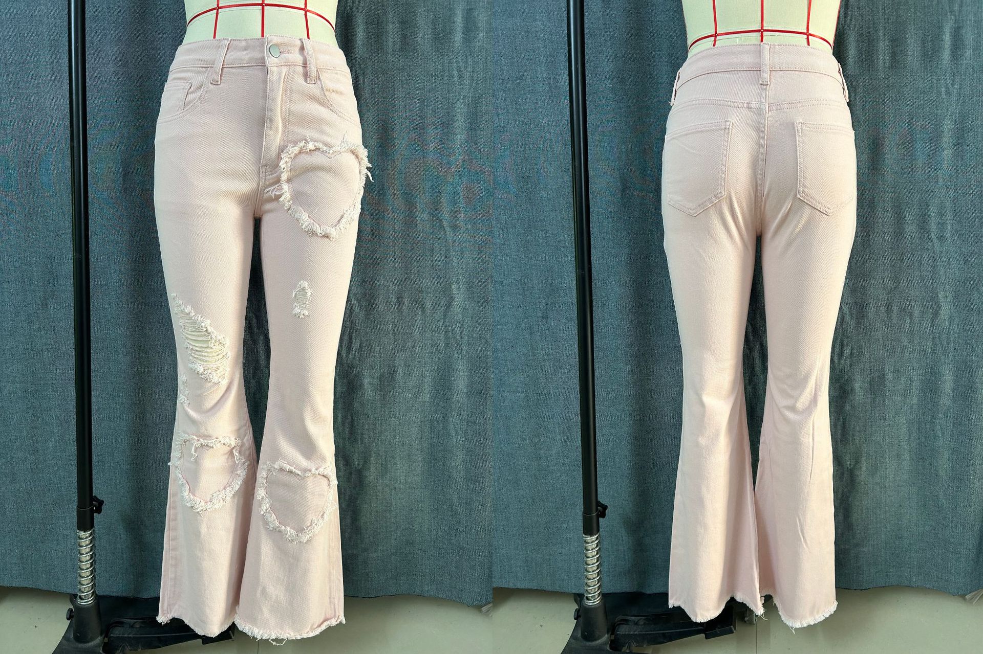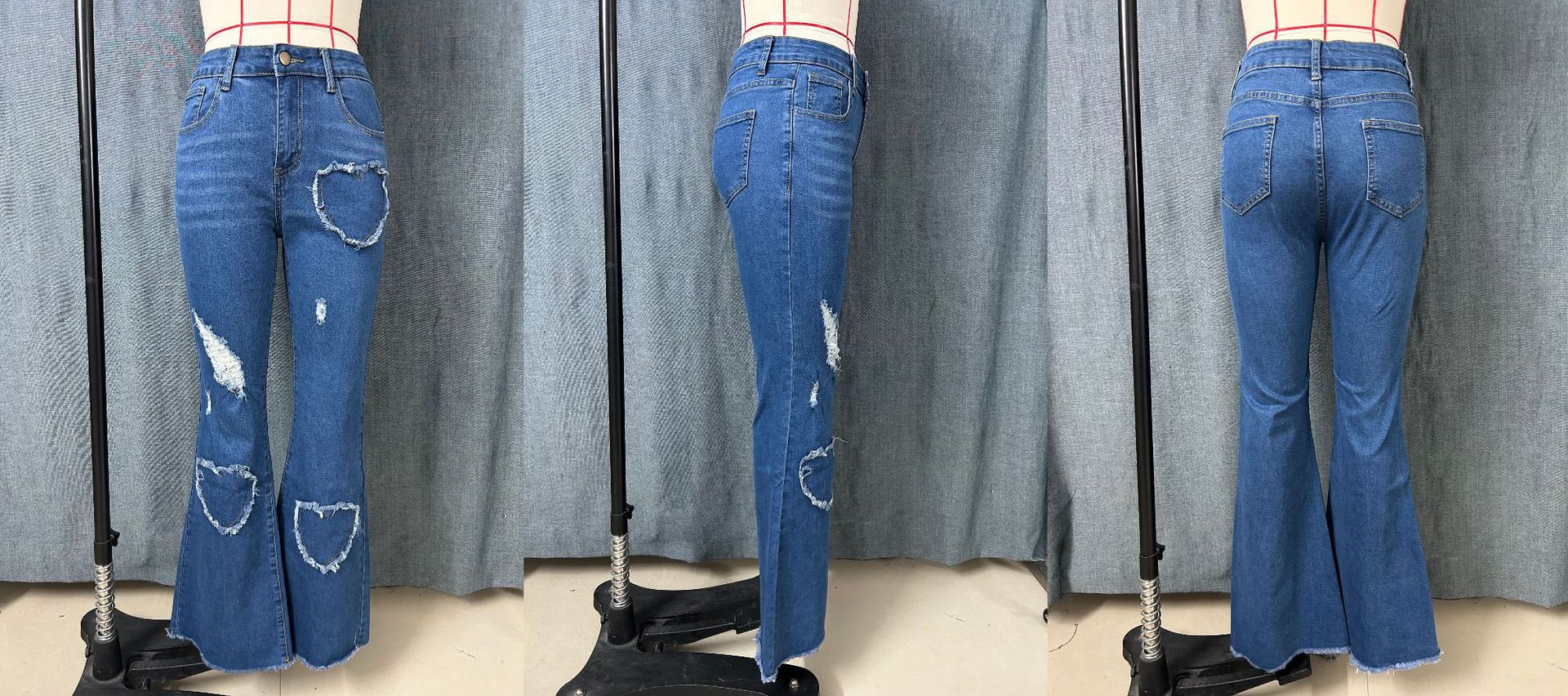 여성용 크로스보더 라이트 블루 데님 팬츠, 다용도 플레어 트림, 패셔너블하고 캐주얼한 하트 모양 디자인, 2025년형 데미지 플레어 팬츠, 신축성 있음스토어 가기