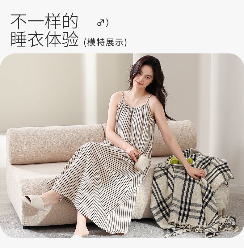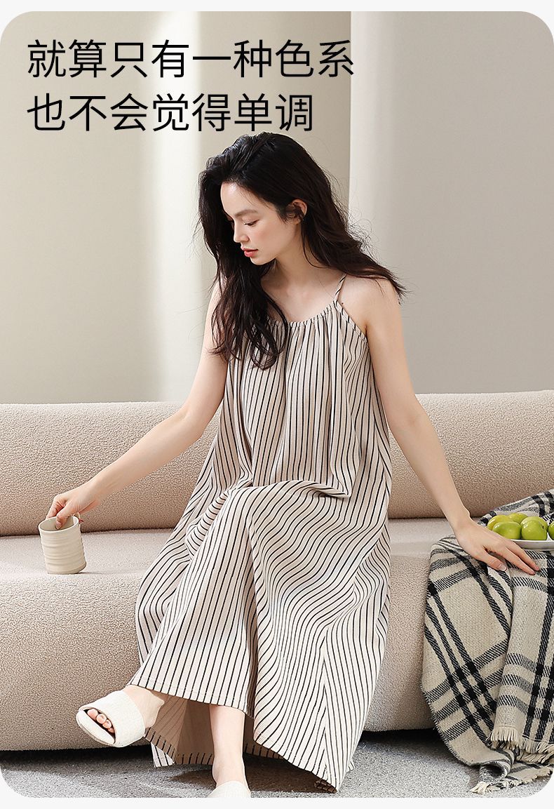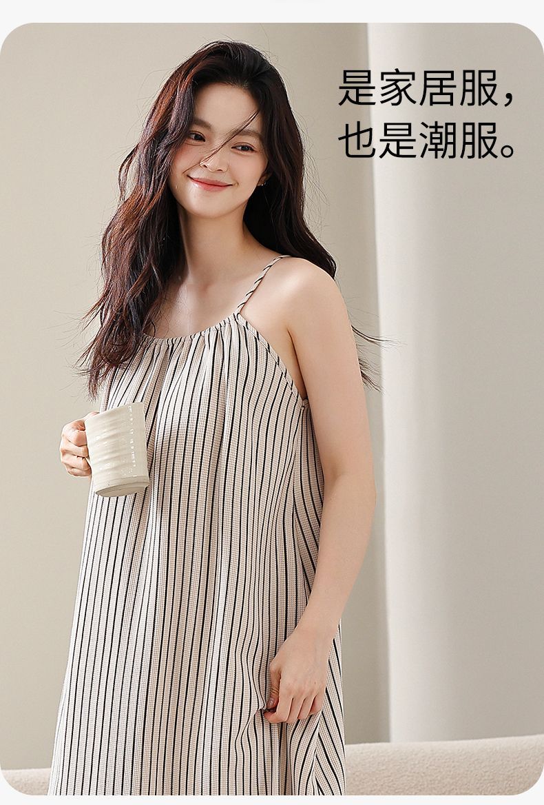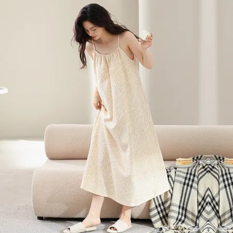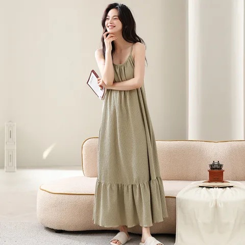 슬링 퓨어 코튼 나이트 가운 긴 원피스 여성 여름 새로운 와플 고급 겉옷 느슨한 집 옷
