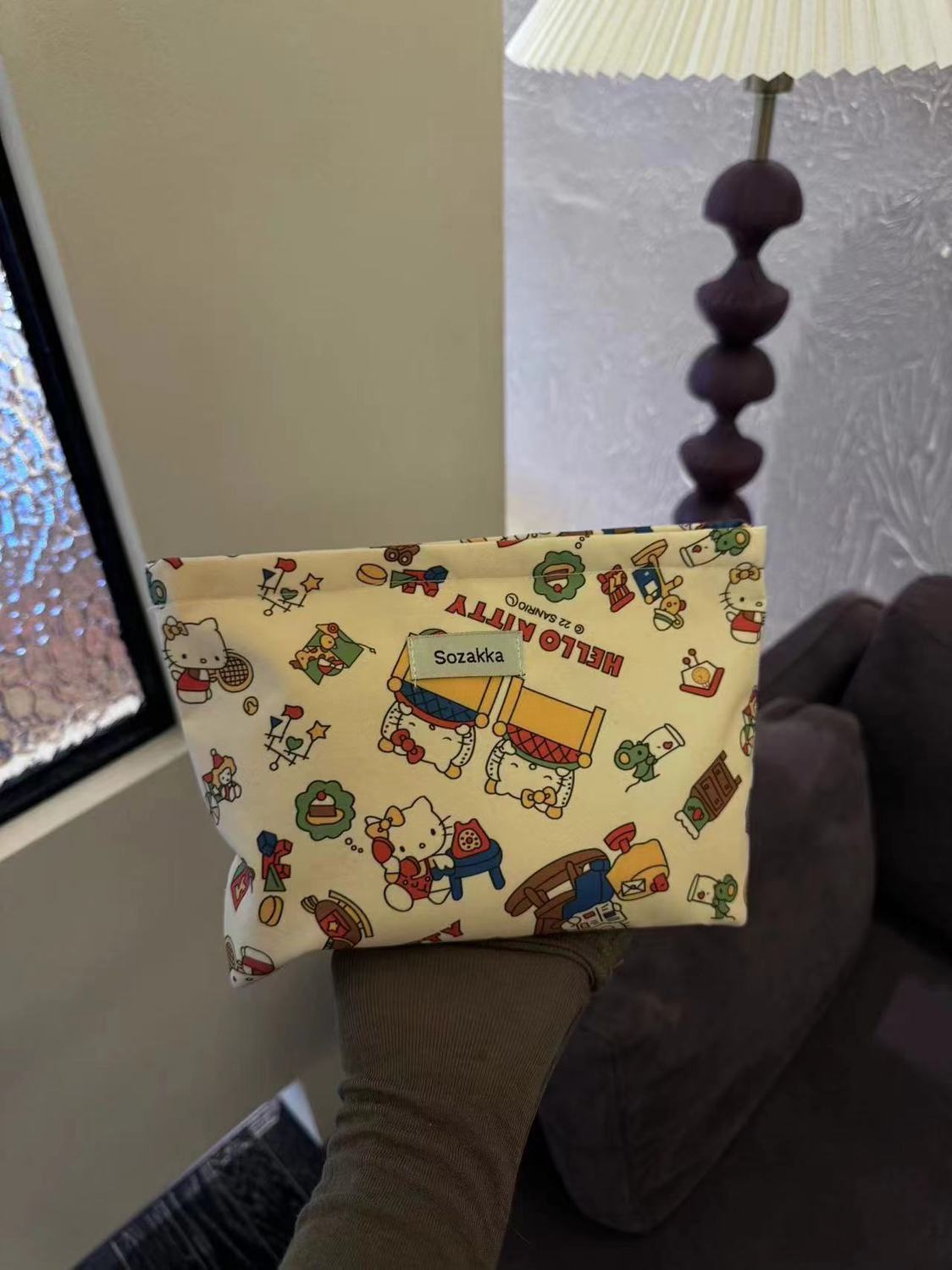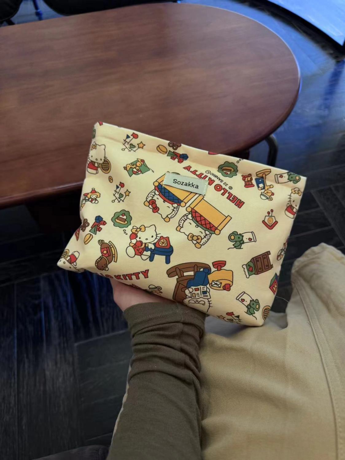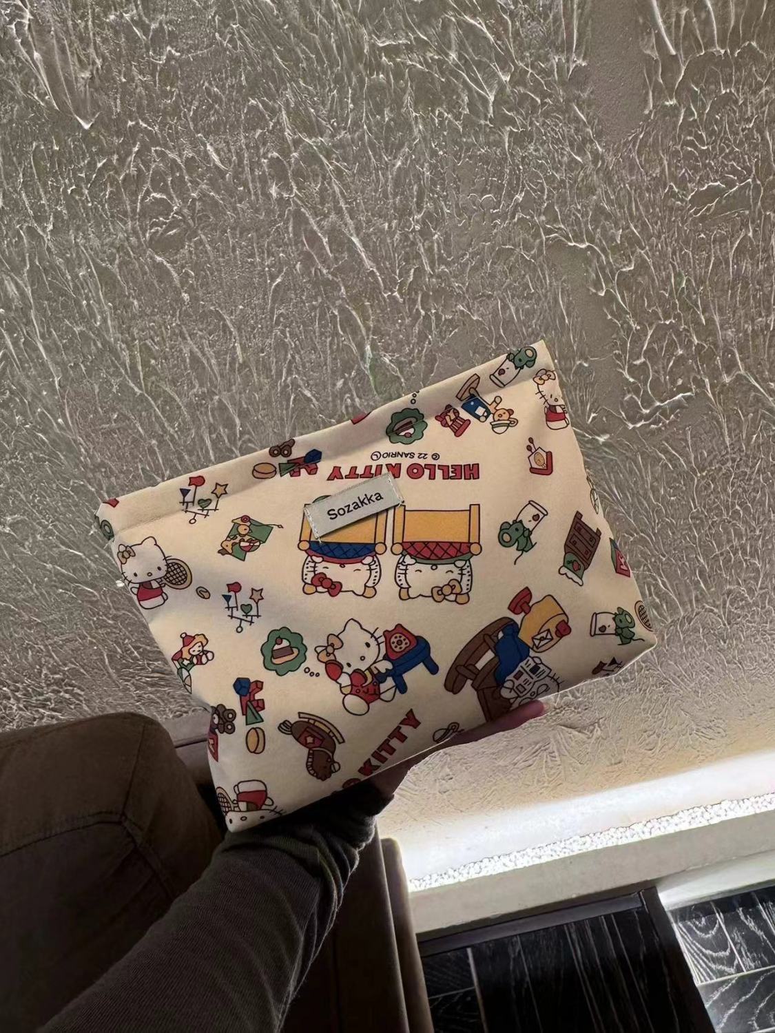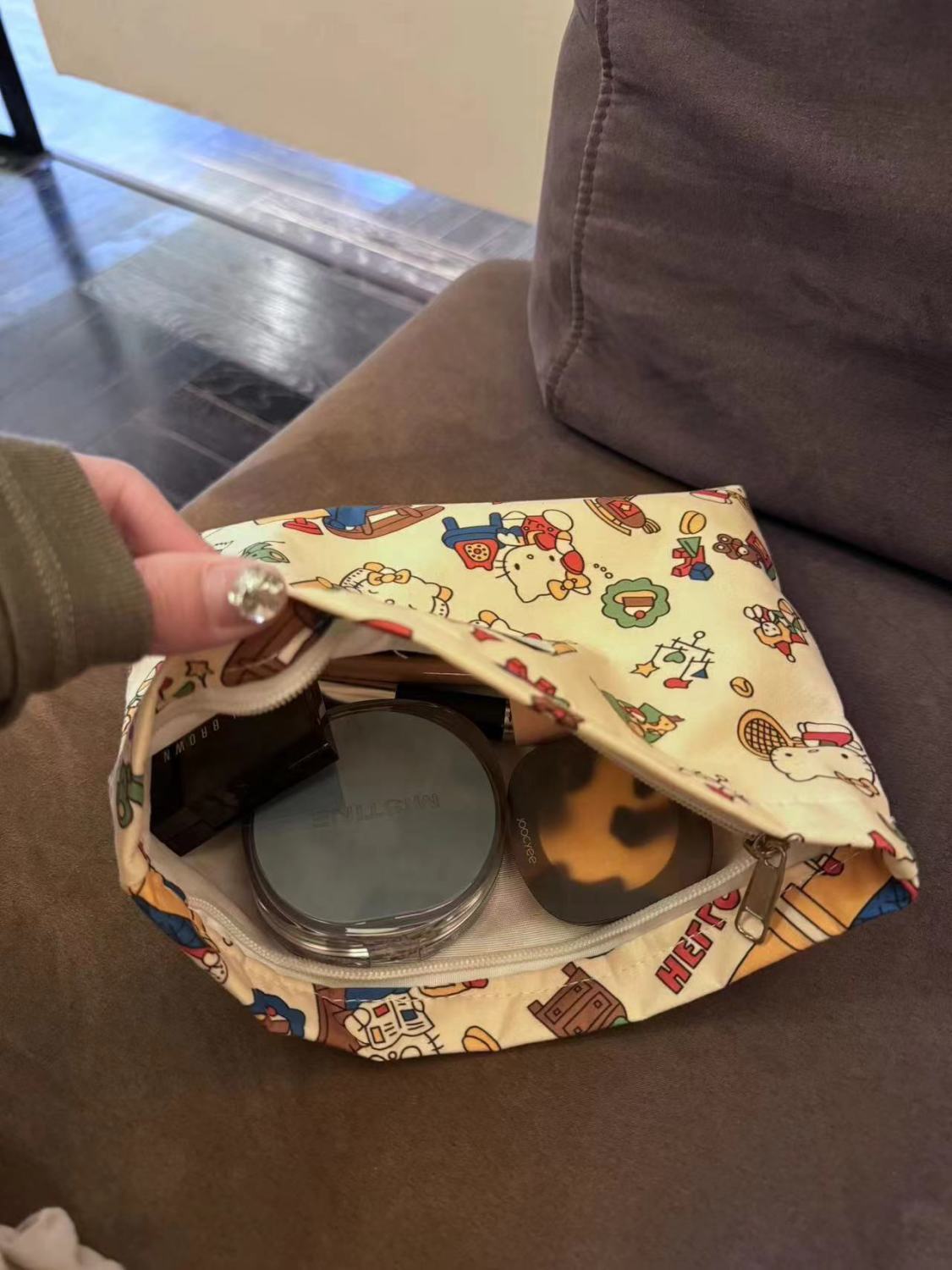 봄과 여름 빛 럭셔리 귀여운 소녀 스윙 나쁜 헬로 키티 인쇄 화장품 가방 틈새 절묘한 손 가방 여행 보관