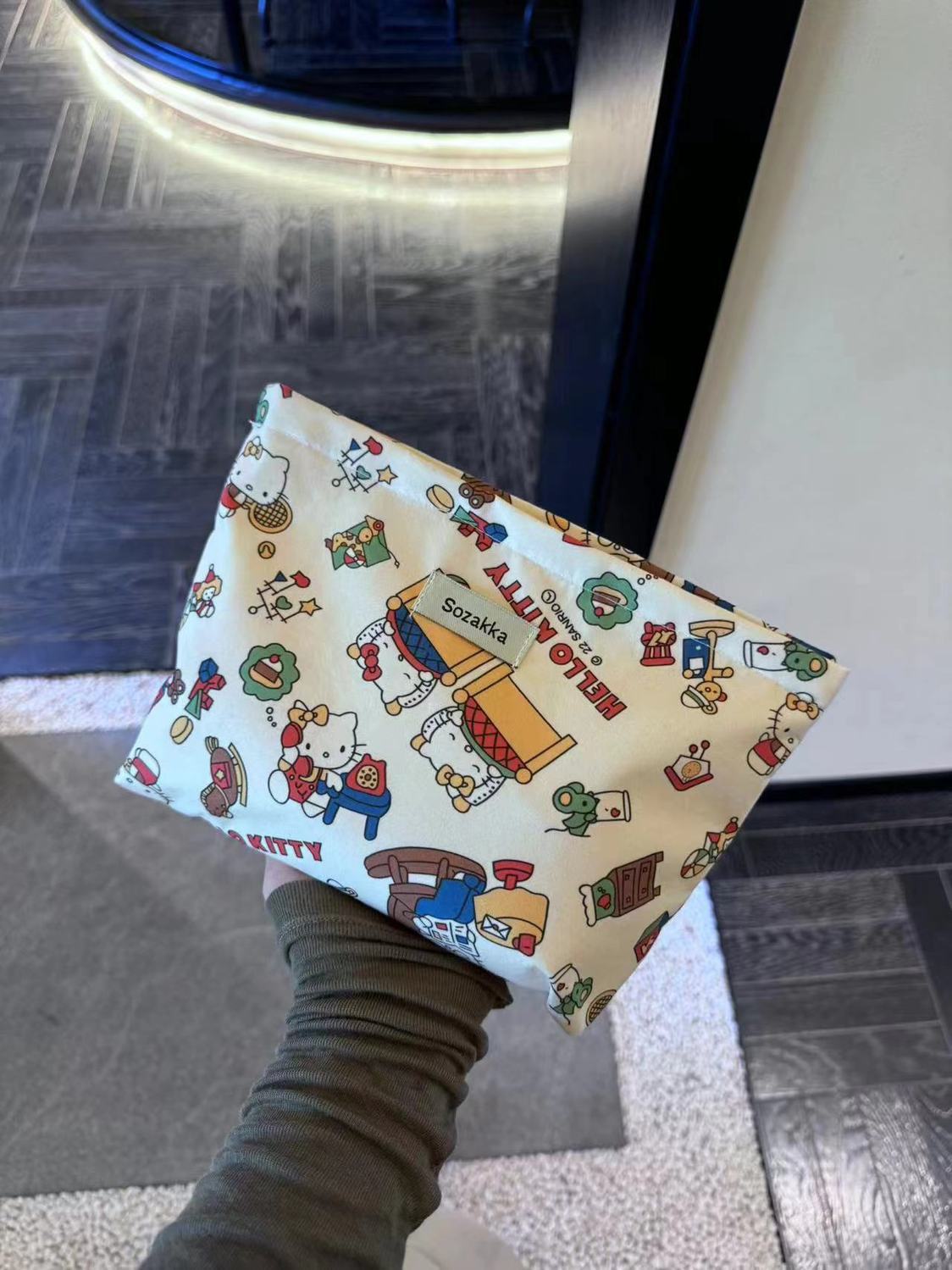 봄과 여름 빛 럭셔리 귀여운 소녀 스윙 나쁜 헬로 키티 인쇄 화장품 가방 틈새 절묘한 손 가방 여행 보관스토어 가기