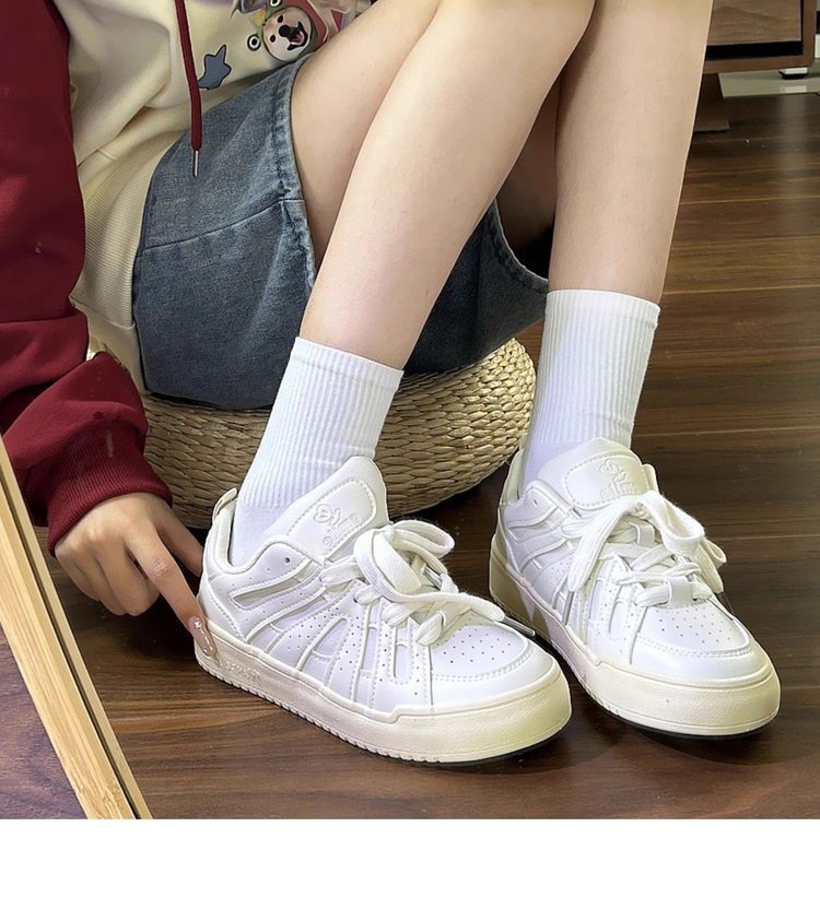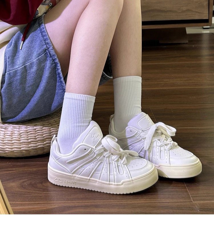 두꺼운 밑창 틈새 보드 신발 여성의 2025 봄과 가을 새 흰색 신발 학생 올 매치 빵 신발 캐주얼 운동화