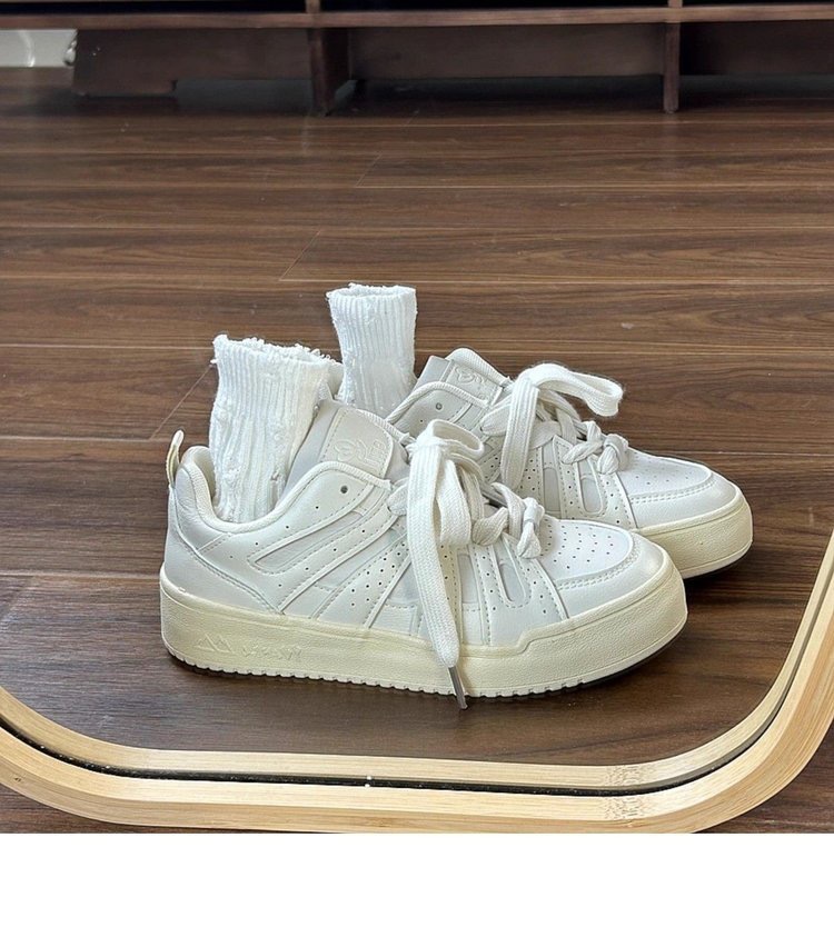 두꺼운 밑창 틈새 보드 신발 여성의 2025 봄과 가을 새 흰색 신발 학생 올 매치 빵 신발 캐주얼 운동화스토어 가기