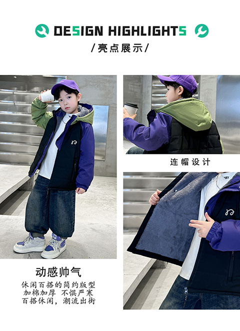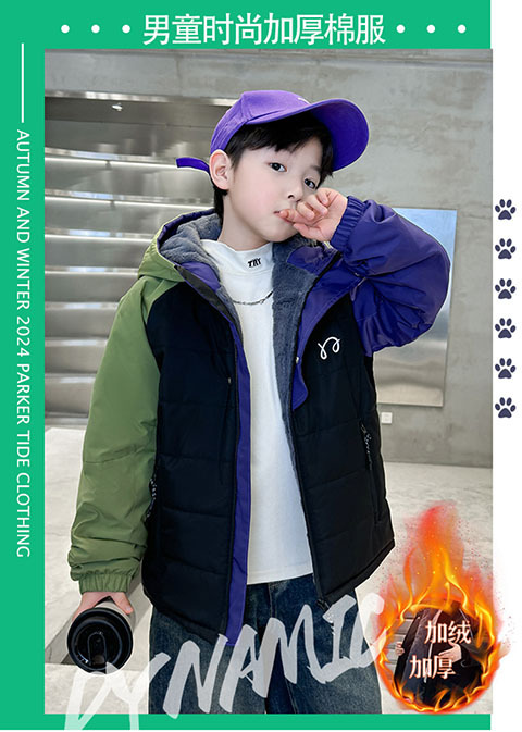 어린이 면화 패딩 재킷 가을과 겨울 코트 기모 면화 파커 2025 새로운 대형 소년 서양식 후드면 패딩 재킷