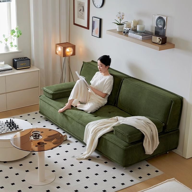 소파 Senyu 작은 아파트 소파 침대 거실 이중 사용 접는 직물 스트레이트 크림 스타일 녹색 3 인 유형스토어 가기