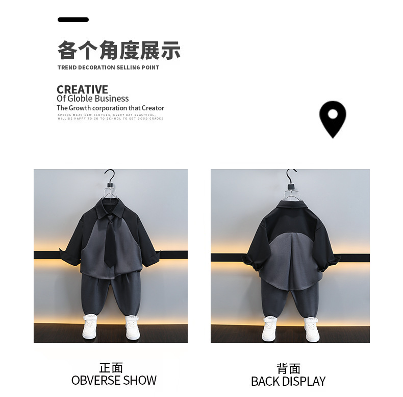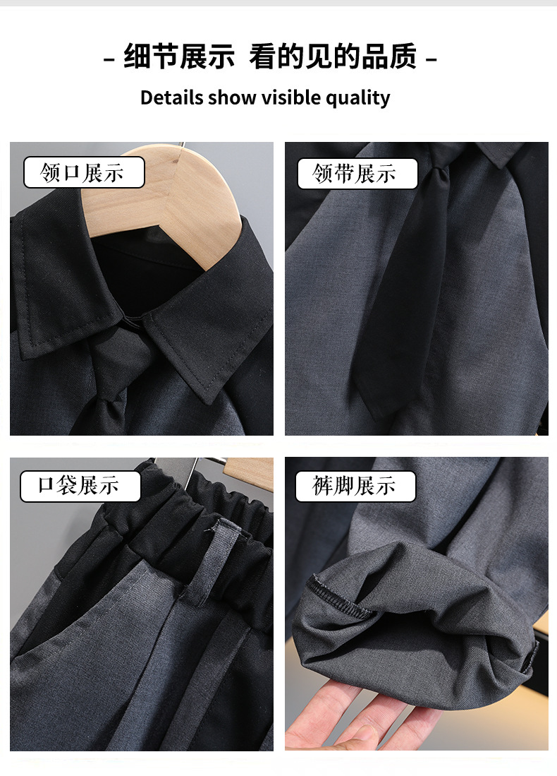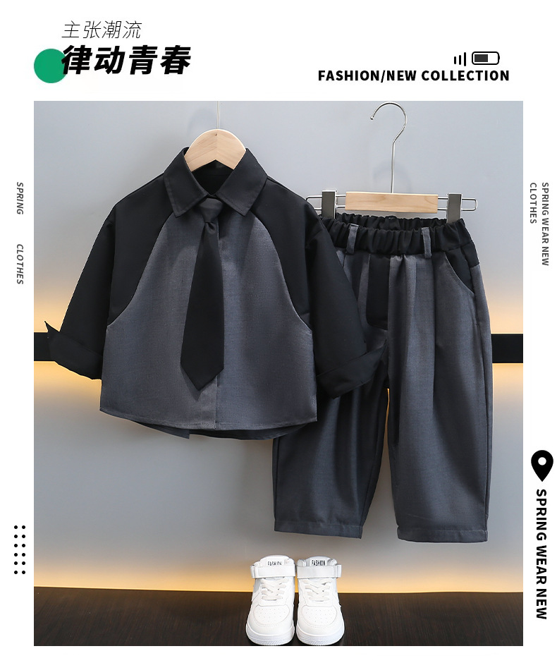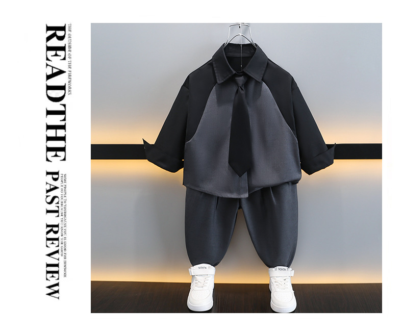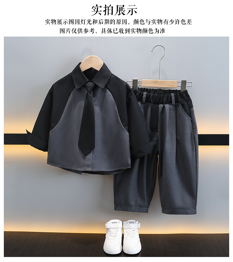 Yipi 잘 생긴 어린이 세트 세트 2025 가을 새로운 소년 원피스 어린이 캐주얼 셔츠 3 피스 패션스토어 가기