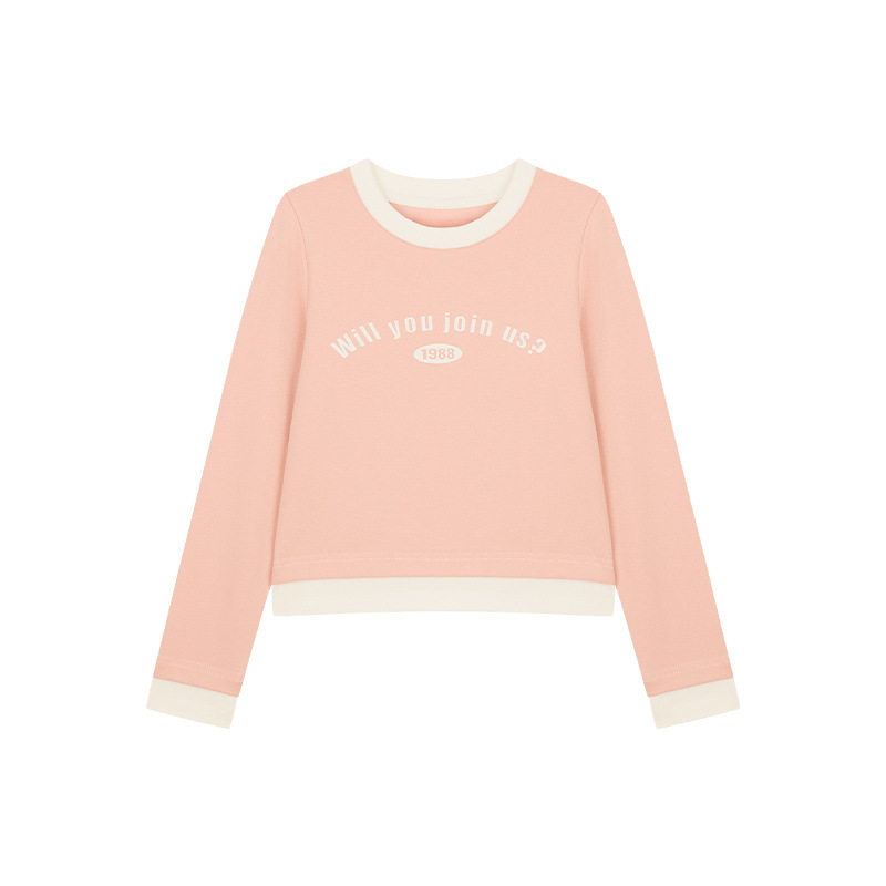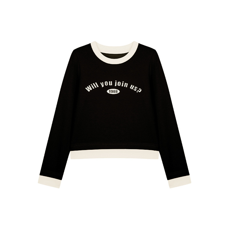Amybaby Girl's Top Spring 2025 새로운 디자인 센스 콘트라스트 컬러 크루 넥 가짜 2 피스 스티칭 올 매치 탑스토어 가기