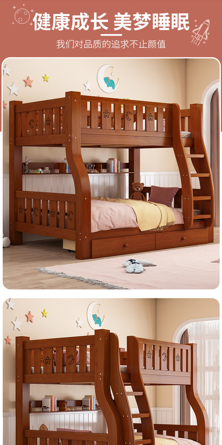 풀 솔리드 우드 엄마와 아이 침대 높고 낮은 이층 침대 작은 아파트 상하 이층 침대 조합 어린이 침대 2 층 유아용 침대