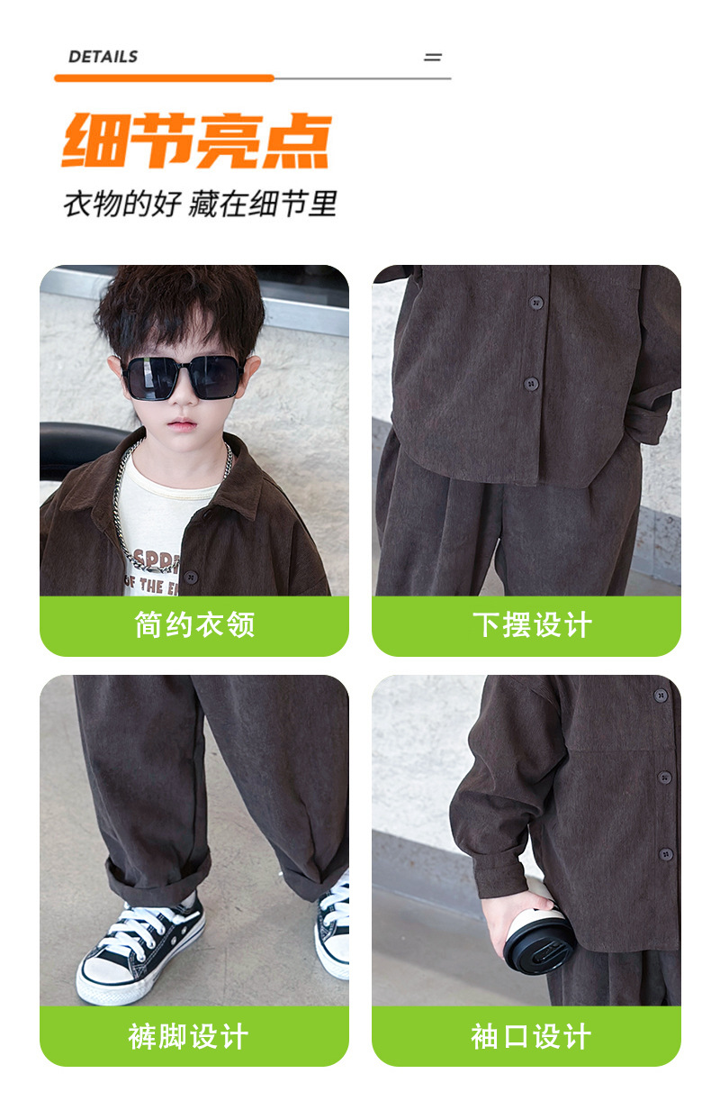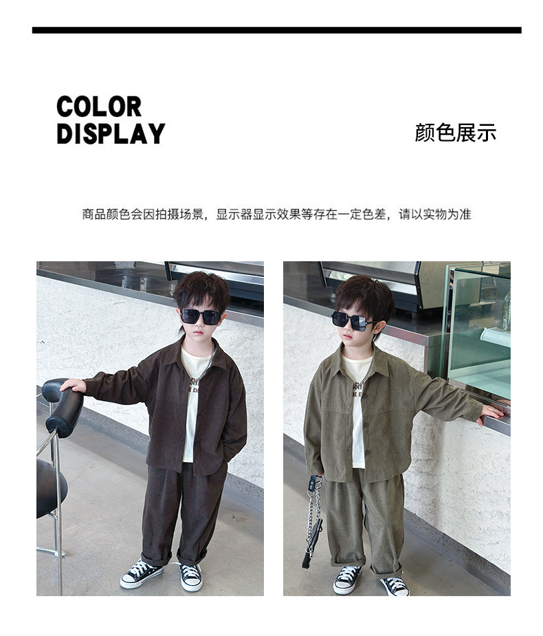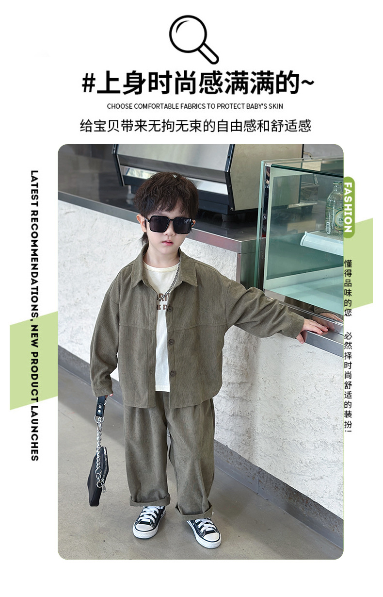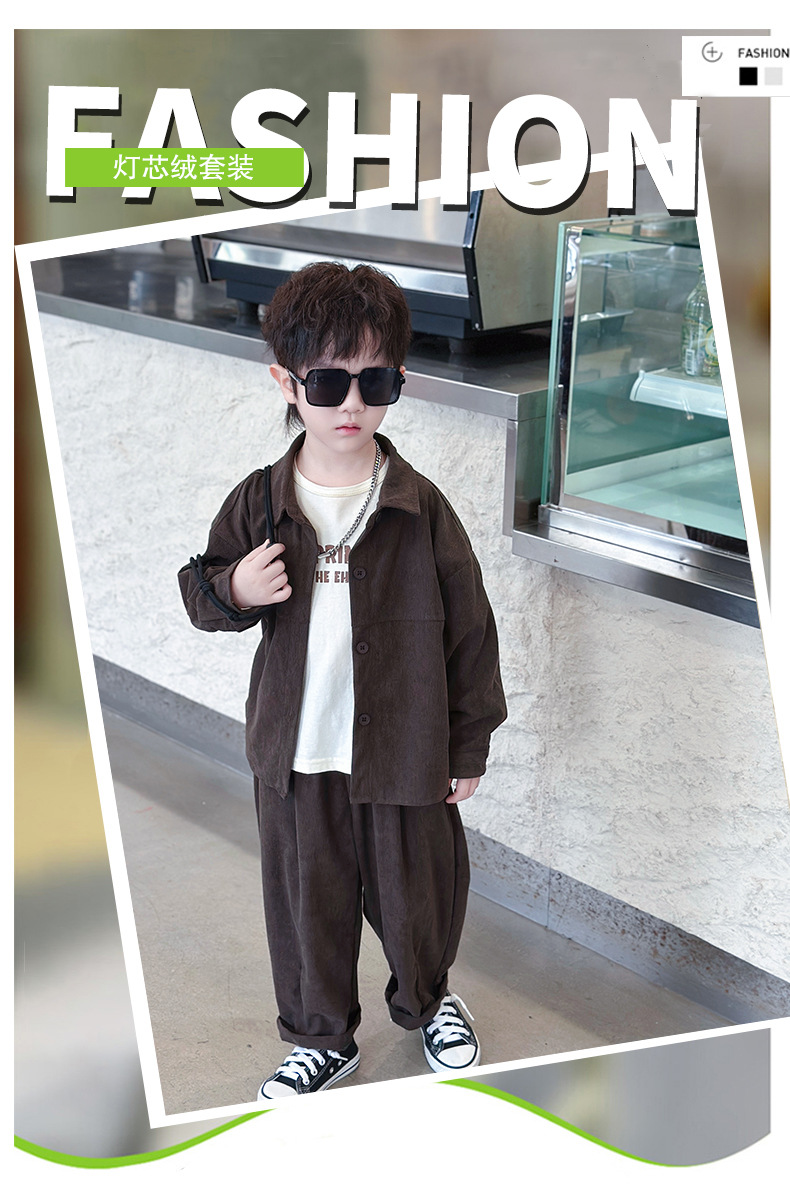 소년 코듀로이 세트 봄과 가을 어린이 잘 생긴 단색 캐주얼 투피스 세트 어린이 국경 간 대외 무역 아동복스토어 가기