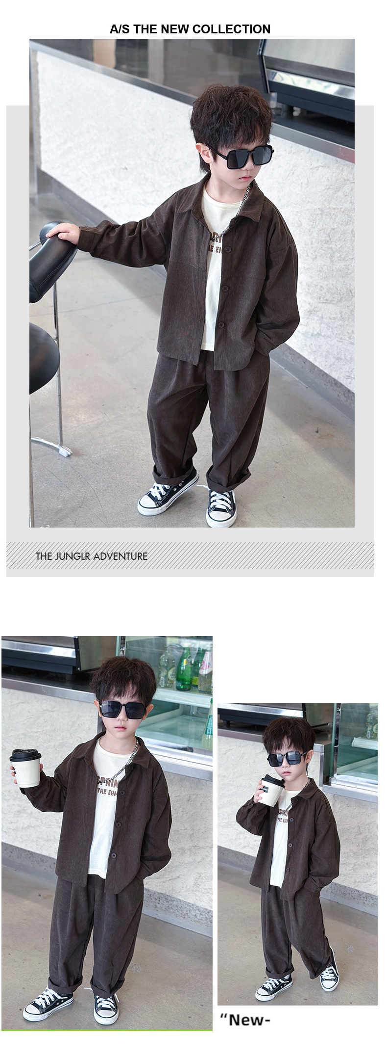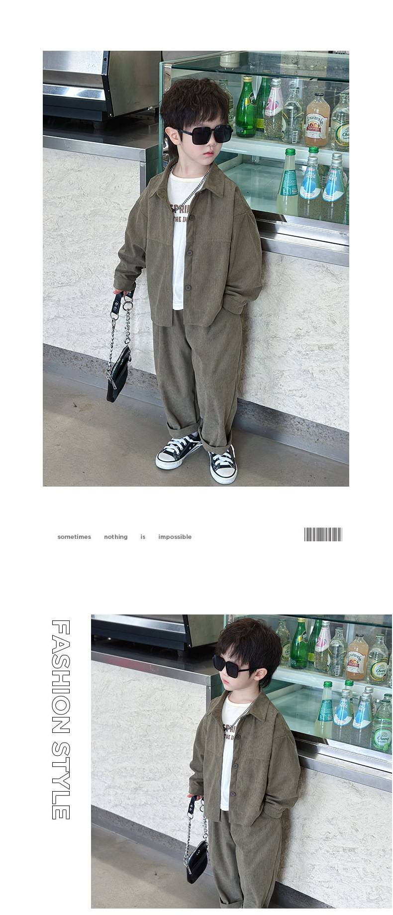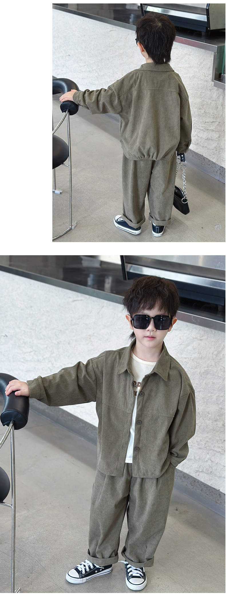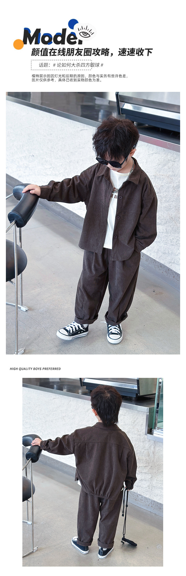 소년 코듀로이 세트 봄과 가을 어린이 잘 생긴 단색 캐주얼 투피스 세트 어린이 국경 간 대외 무역 아동복스토어 가기