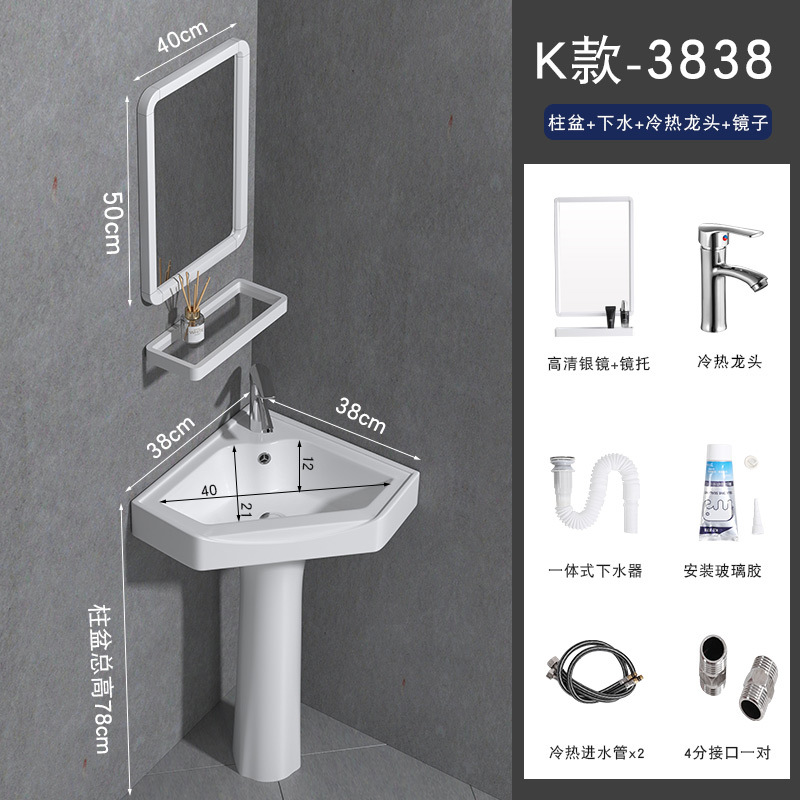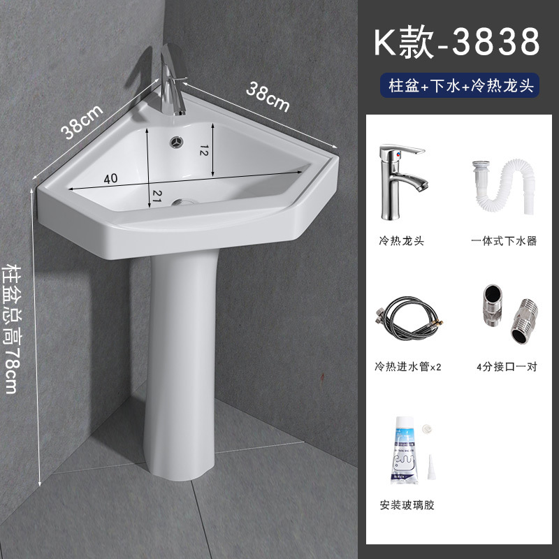 칼럼 세면대 작은 아파트 욕실 삼각형 기둥 분지 통합 세라믹 미니 바닥 세면대 발코니스토어 가기