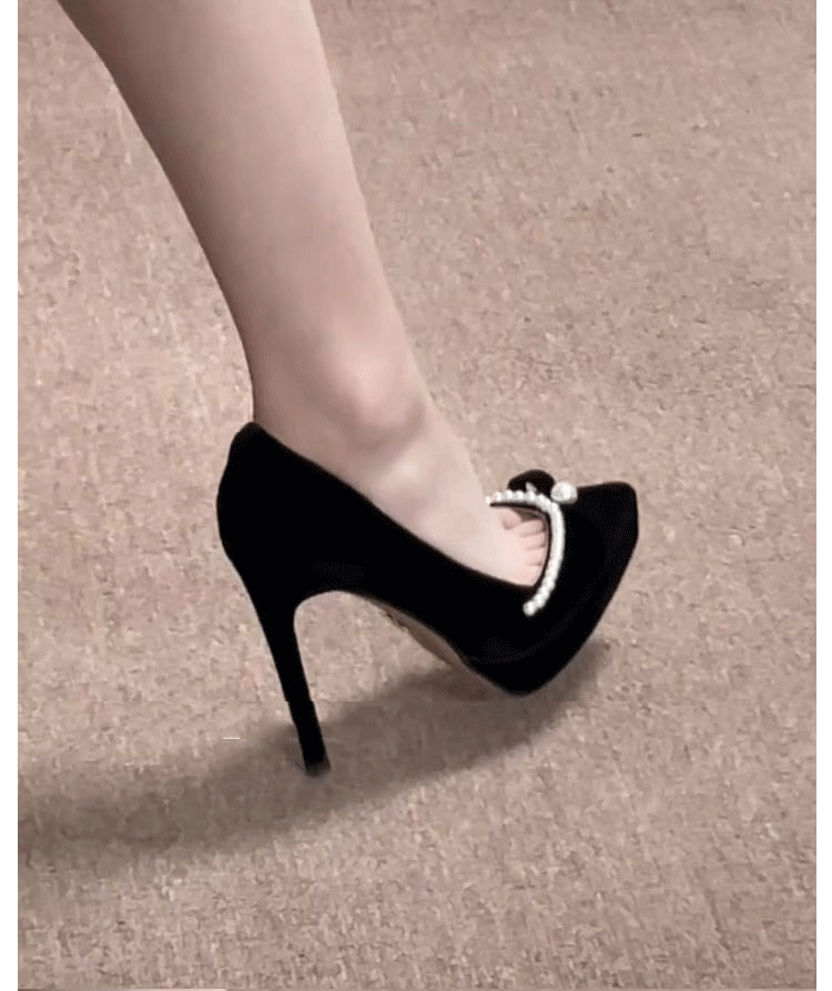 원피스 신발 메인 원사 웨딩 신발 여성용 블랙 새틴 활 진주 요정 스타일 신부 신발 고급 뒤꿈치 하이힐 신부 신발스토어 가기