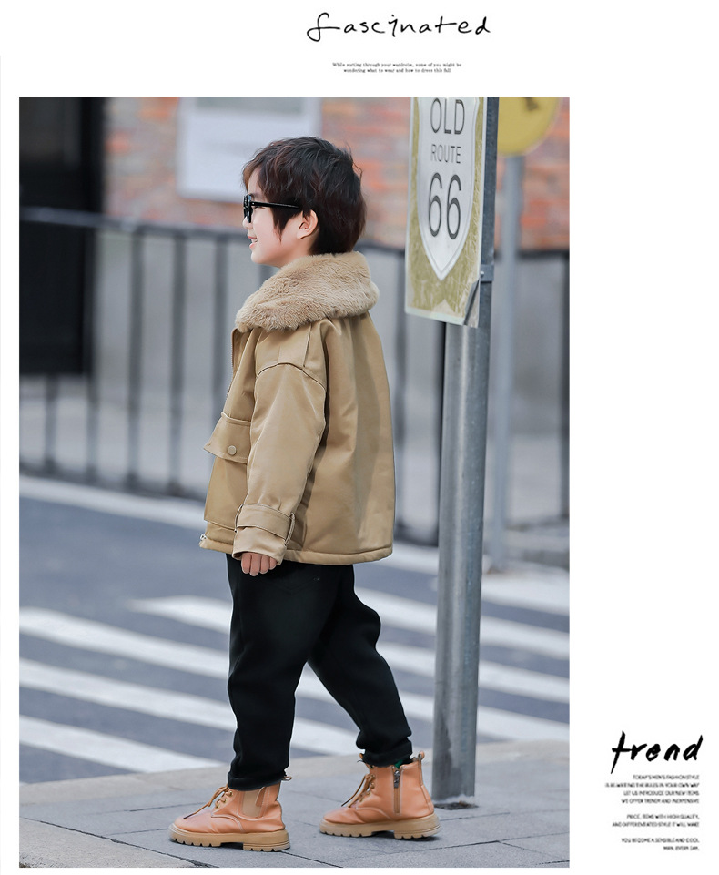 어린이 소년 기모 재킷 겨울 파이크 2025 새로운 두꺼운 가을과 겨울 재킷 소년의 면화 패딩 코트 트렌디