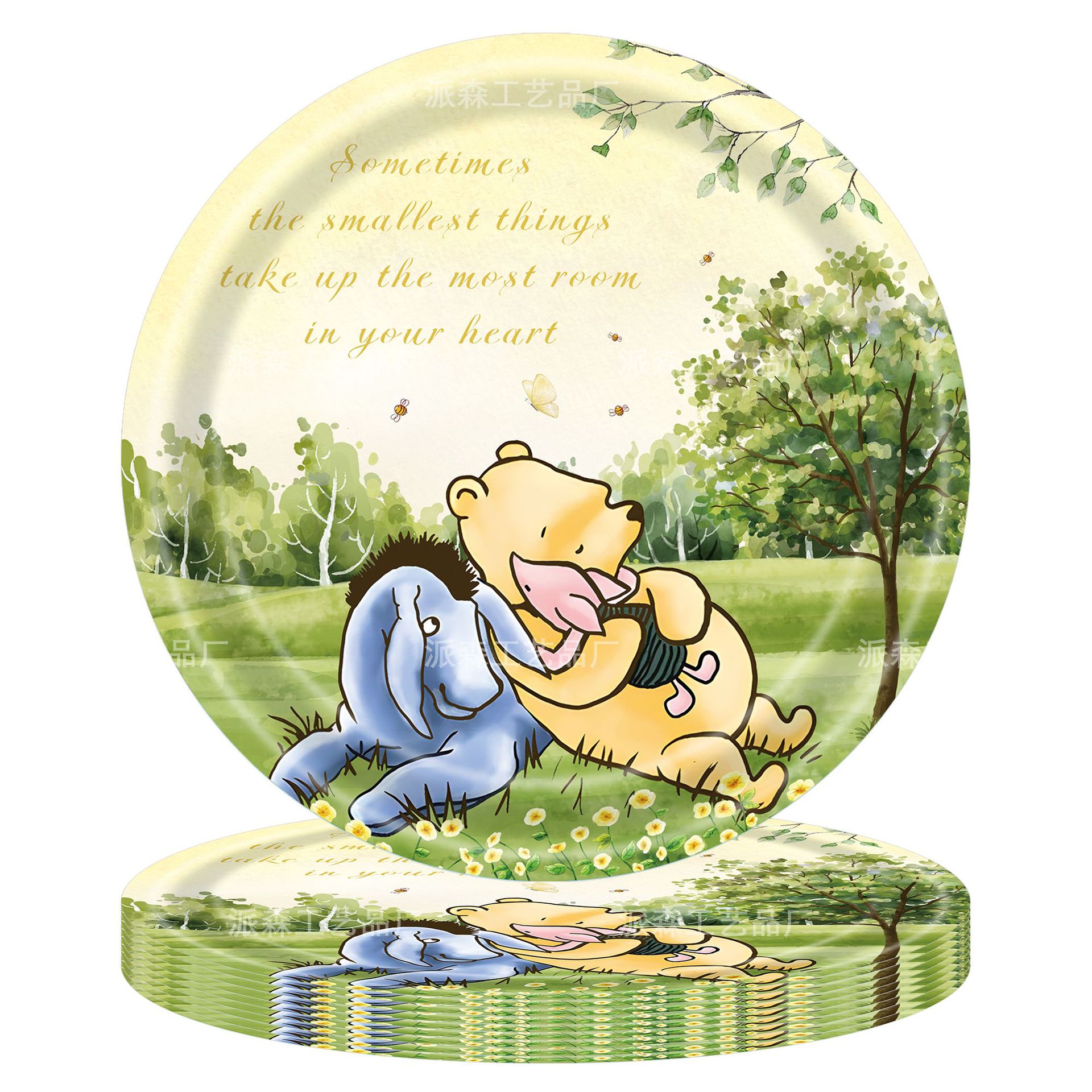 새로운 만화 위니 푸우 어린이 생일 파티 장식 노란색 꿀 식탁보 식기 종이컵 종이 접시 세트스토어 가기
