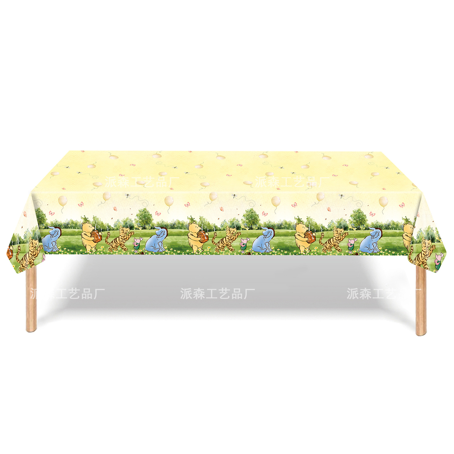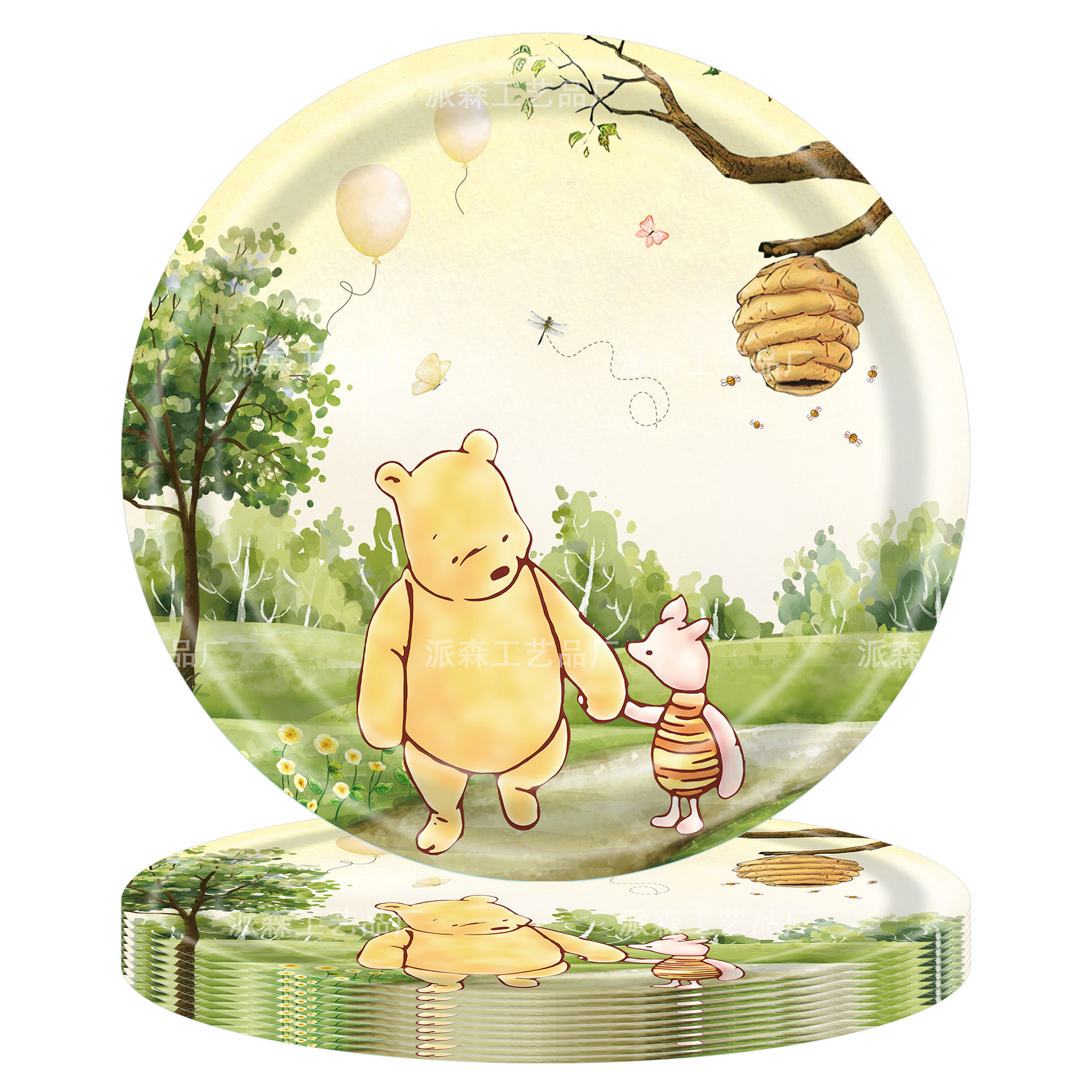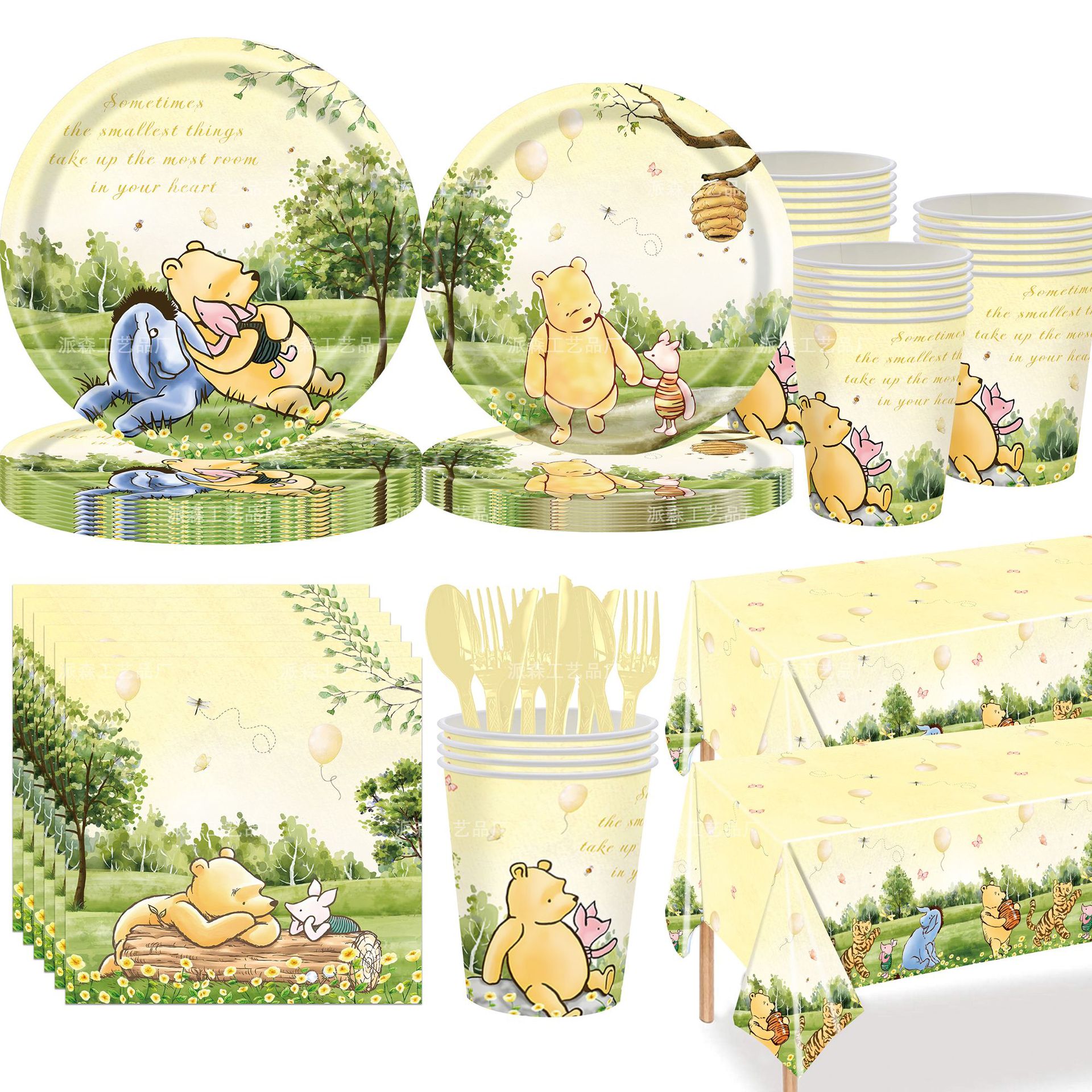 새로운 만화 위니 푸우 어린이 생일 파티 장식 노란색 꿀 식탁보 식기 종이컵 종이 접시 세트