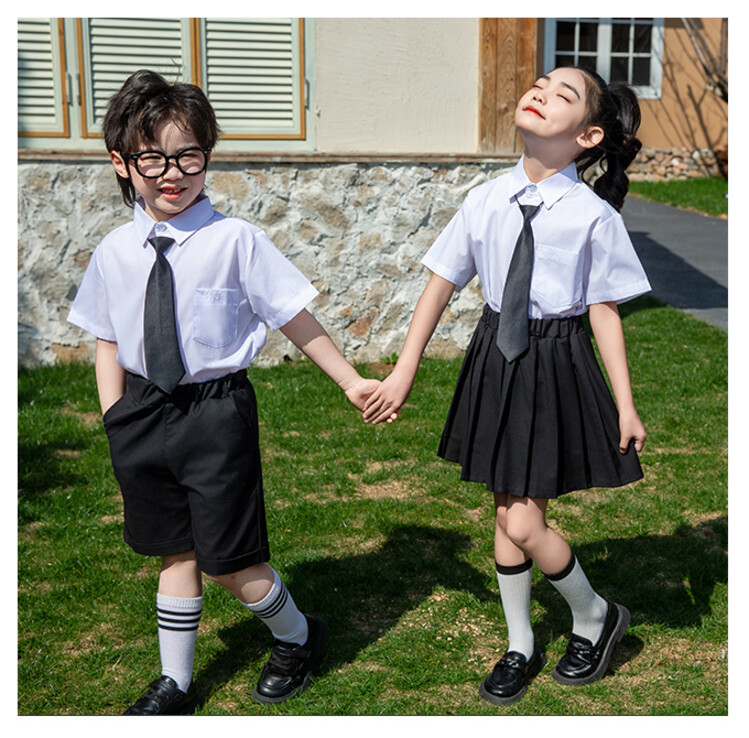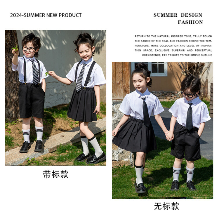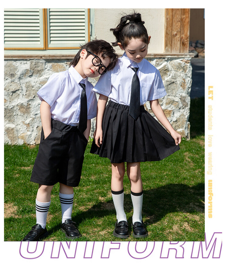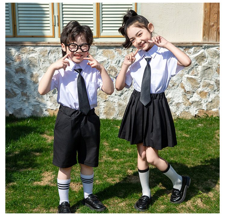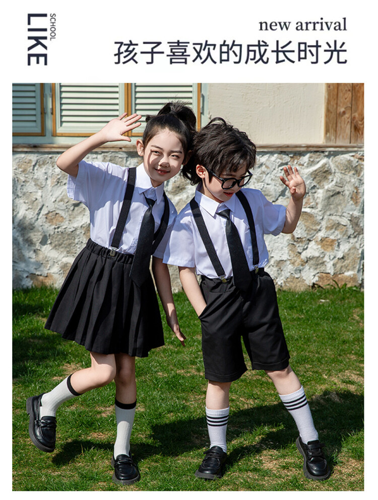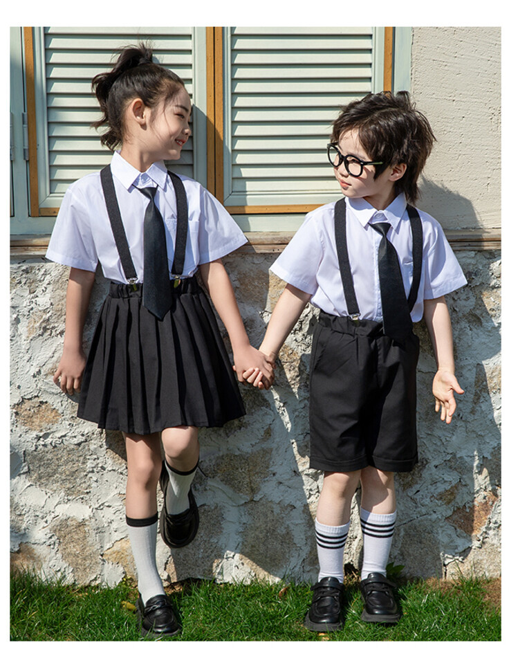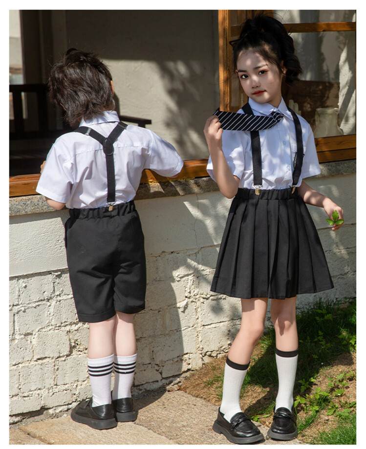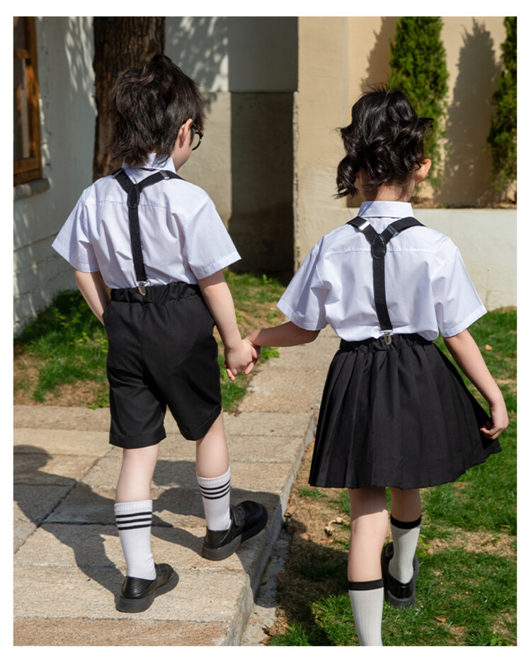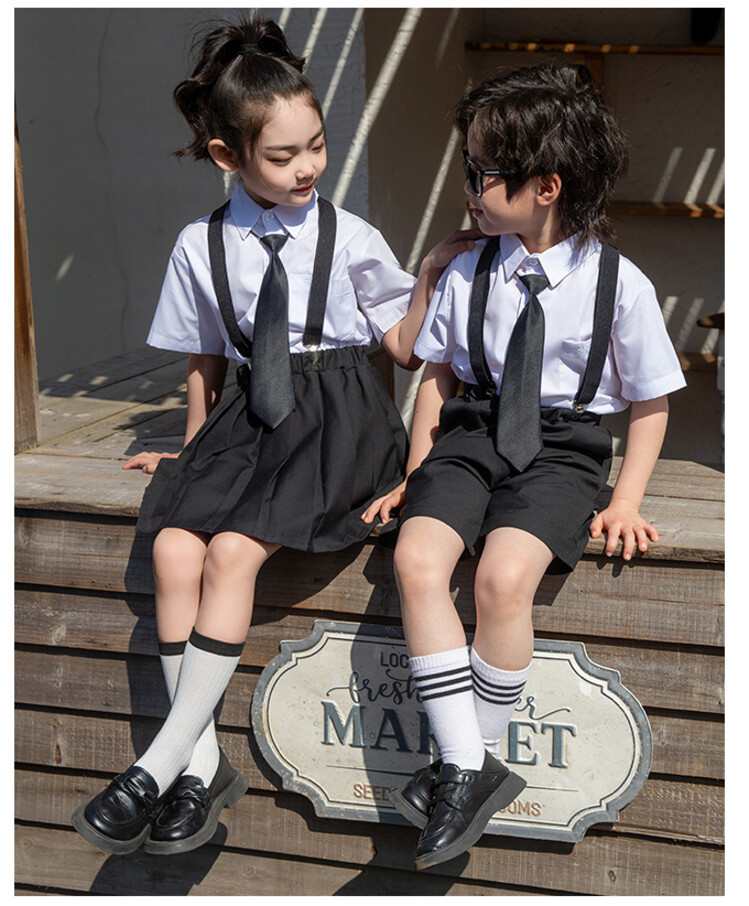 어린이 6 월 1 일 공연 세트 여름 새 소년 소녀 반팔 셔츠 주름 스커트 투피스 세트 큰 어린이 여름 옷