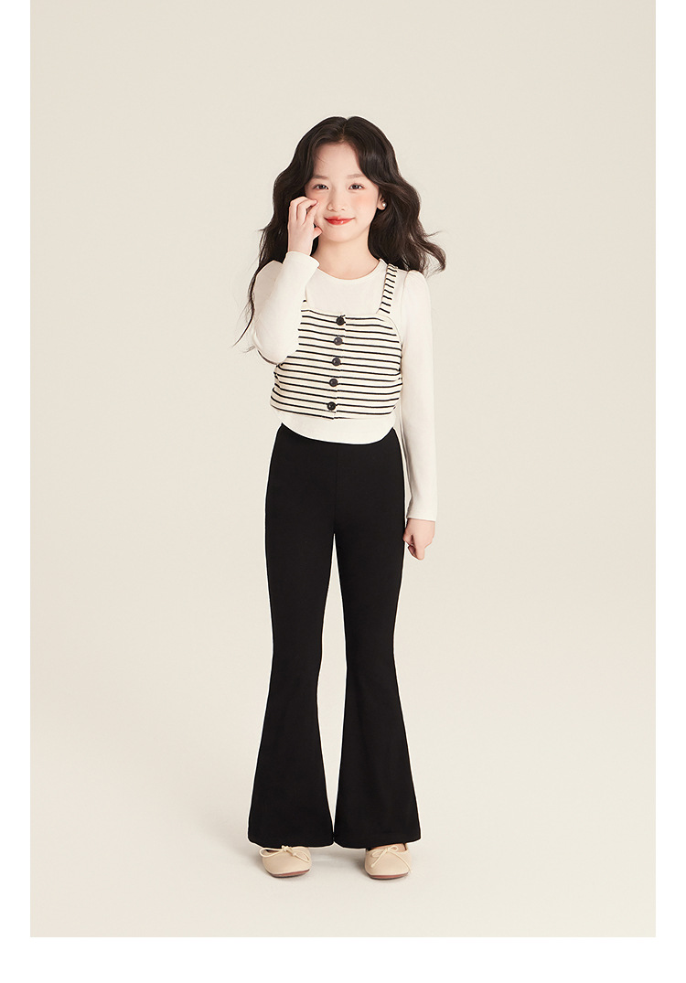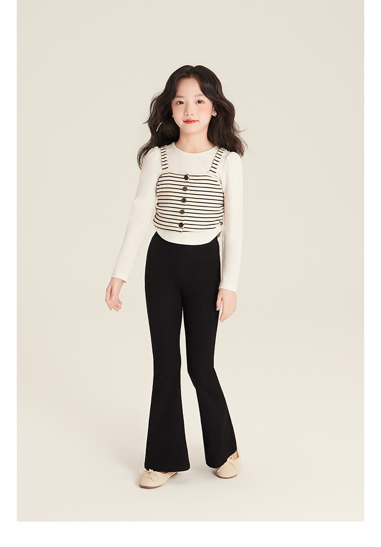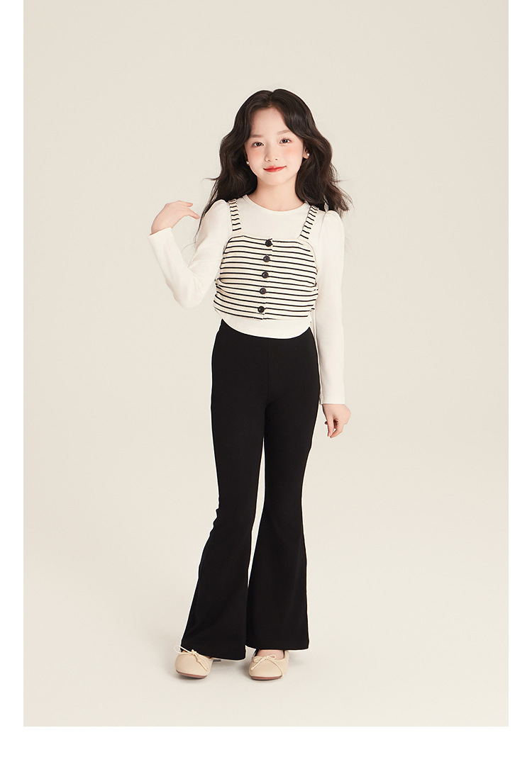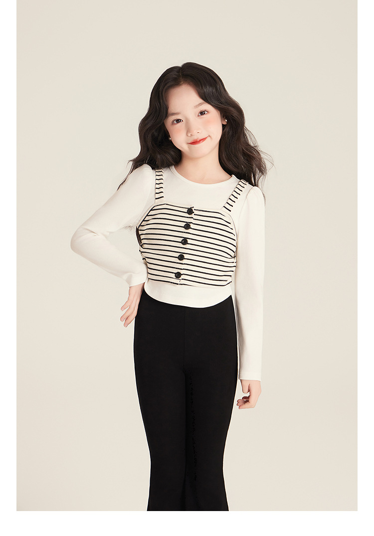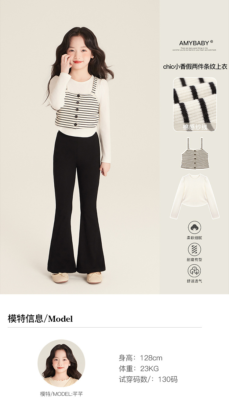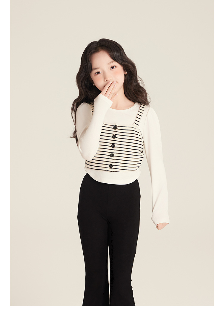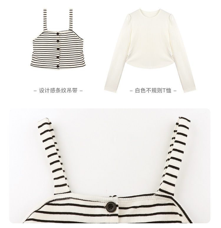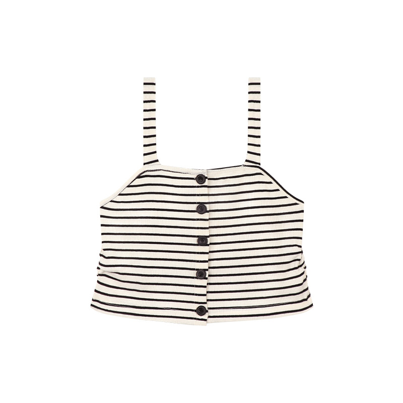 Amybaby Girl's Top Spring 2025 새로운 디자인 센스 플리츠 스트라이프 슬링 불규칙한 솔리드 컬러 베이스