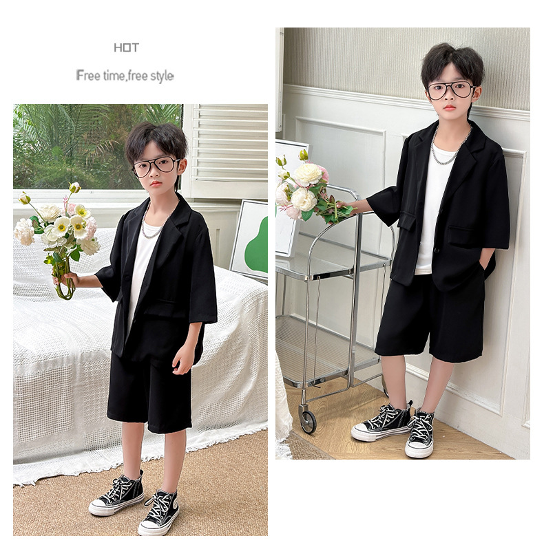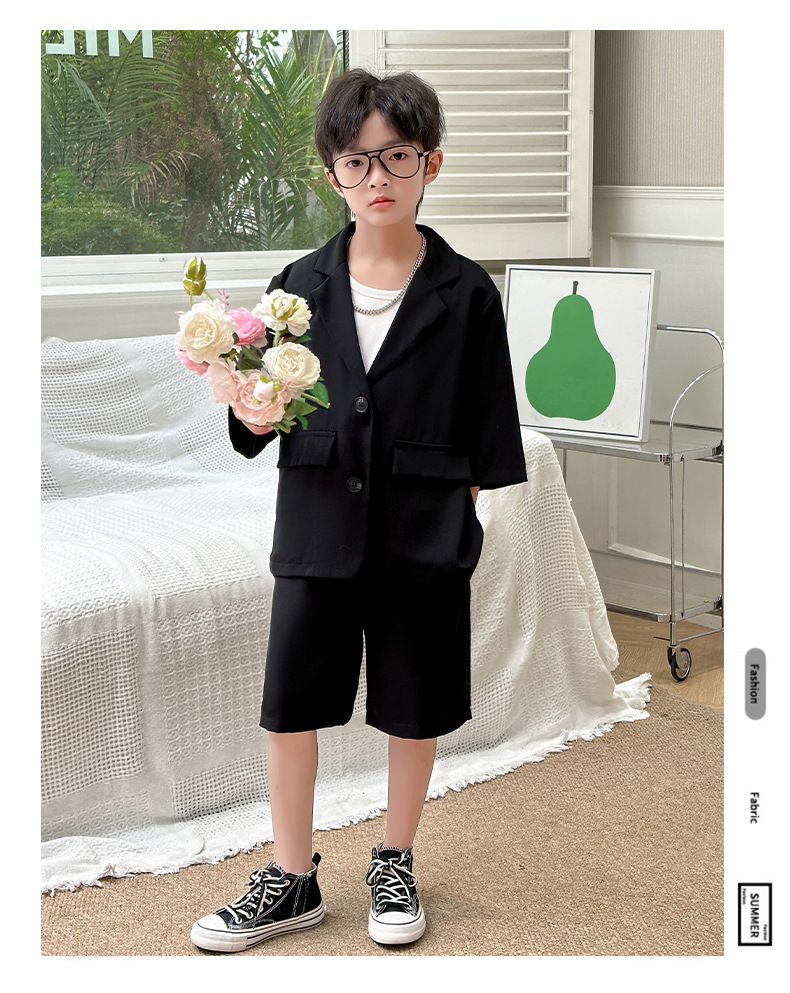 소년 세트 2025 세트 여름 한국 스타일 어린이 새 얇은 짧은 소매 캐주얼 소년 꽃소녀 원피스 세트
