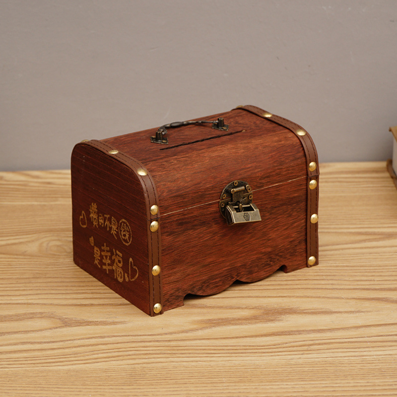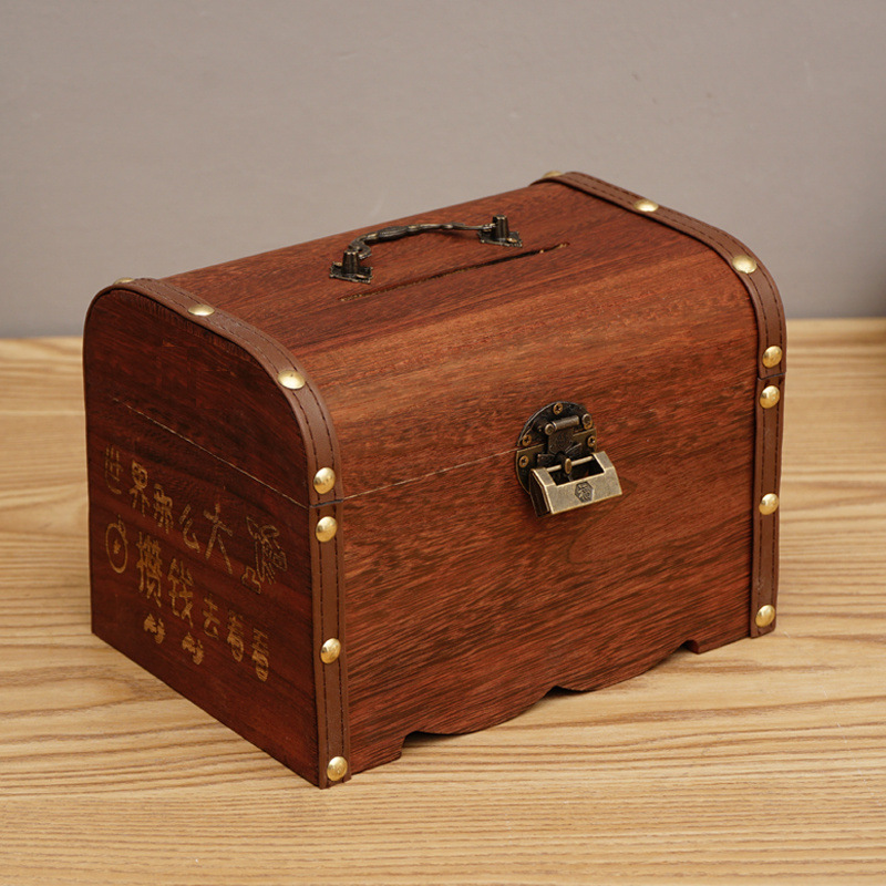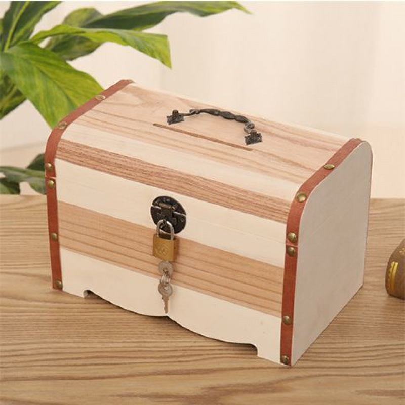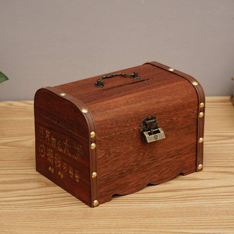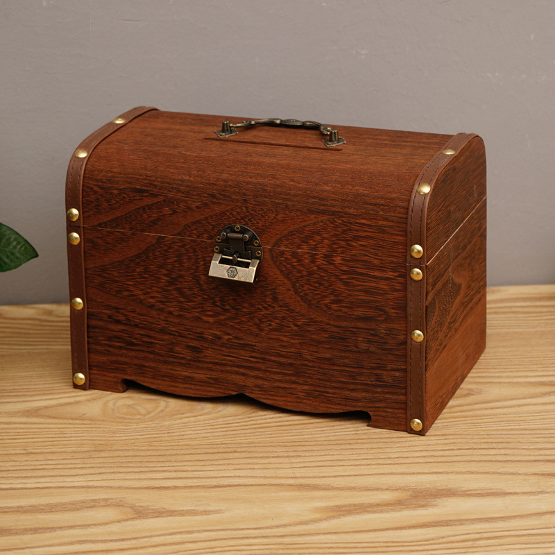 나무 상자 단단한 나무 보물 상자 자물쇠 아이들의 창조적 인 대용량 저축 냄비 은행권 성인 현금 상자 스페셜 에디션스토어 가기