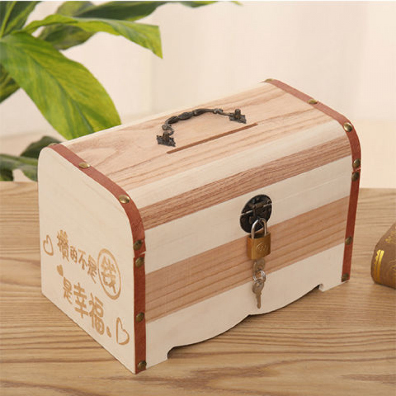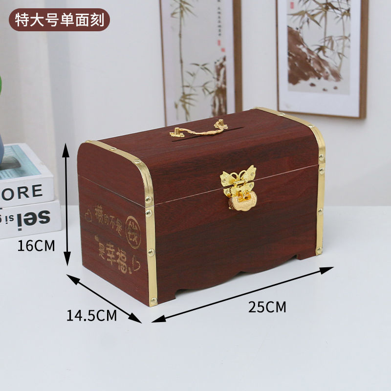 나무 상자 단단한 나무 보물 상자 자물쇠 아이들의 창조적 인 대용량 저축 냄비 은행권 성인 현금 상자 스페셜 에디션
