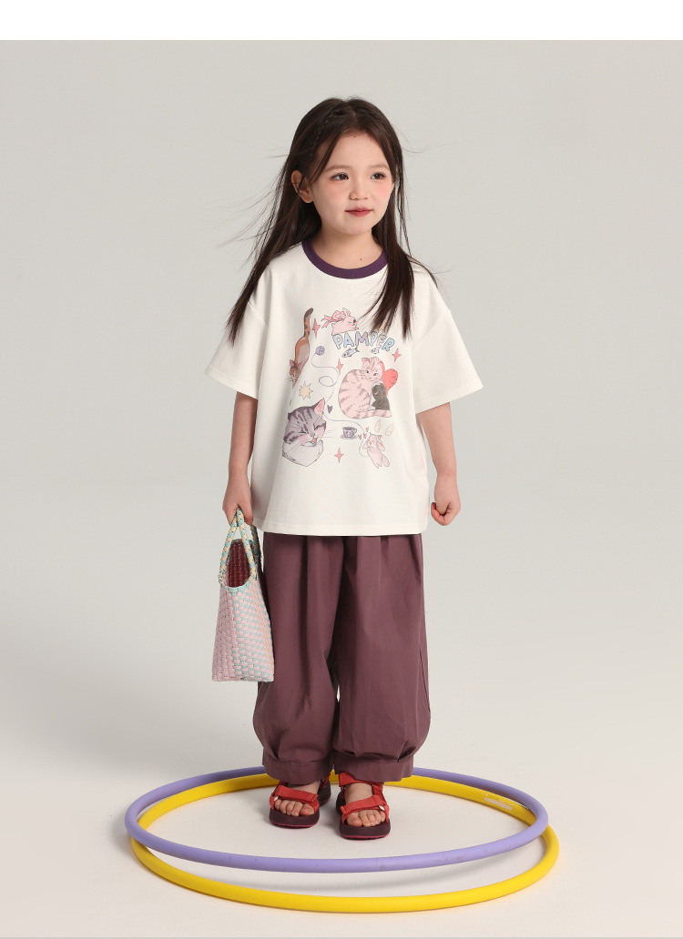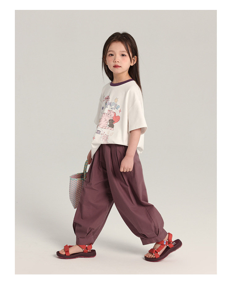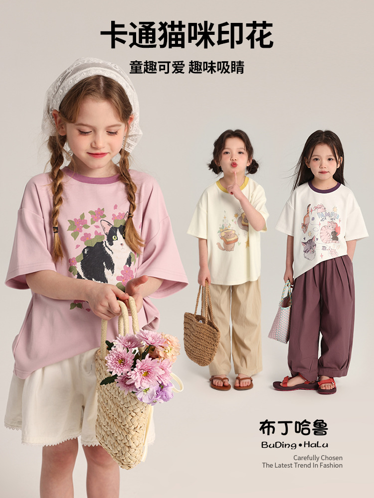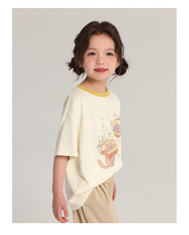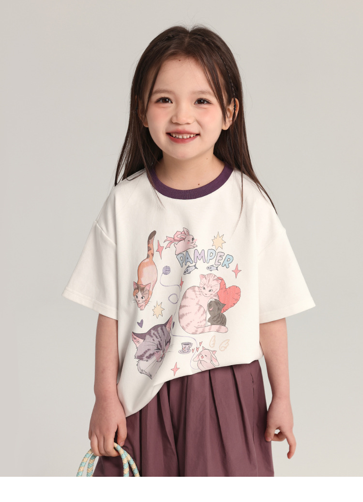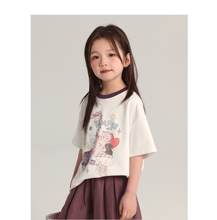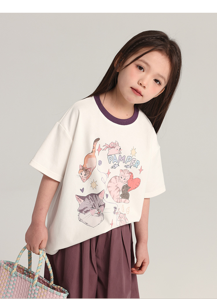 푸딩하루 아동복 만화 프린트 반팔 티셔츠 2026 신상 여아 여름 도파민 라운드넥 베이스 티셔츠