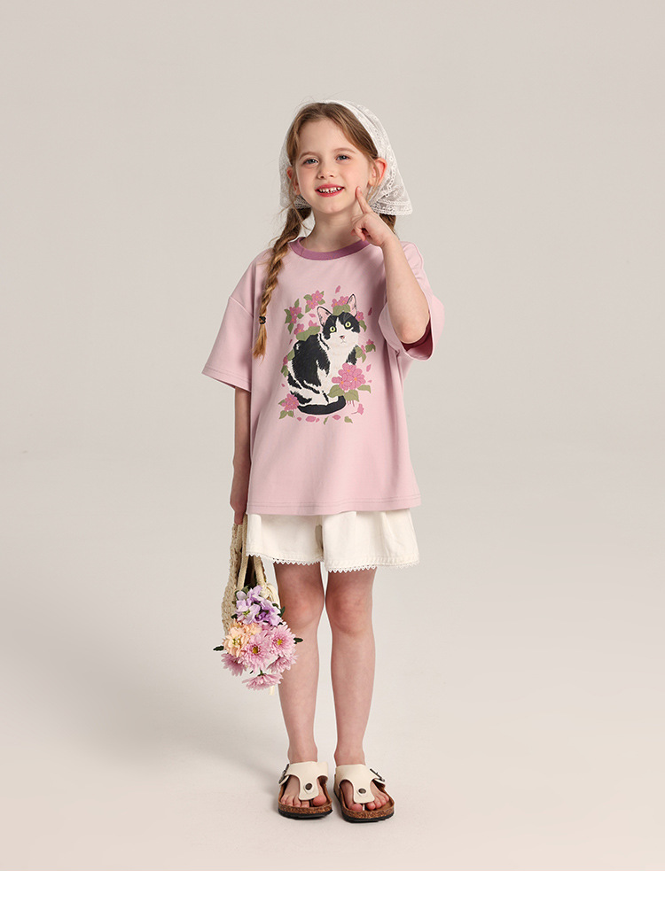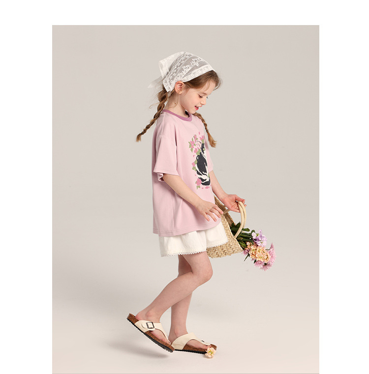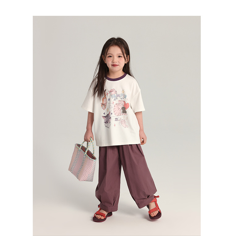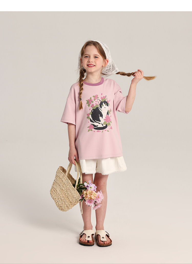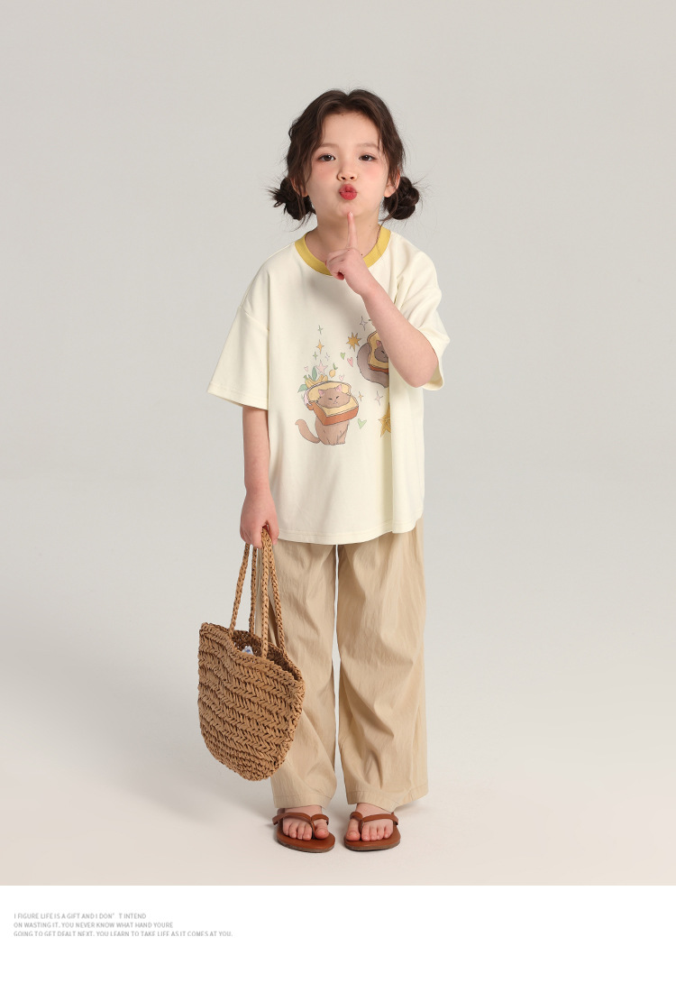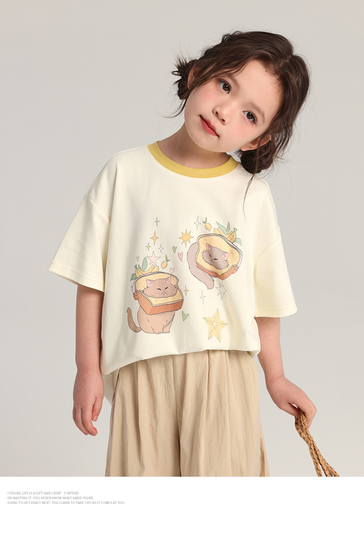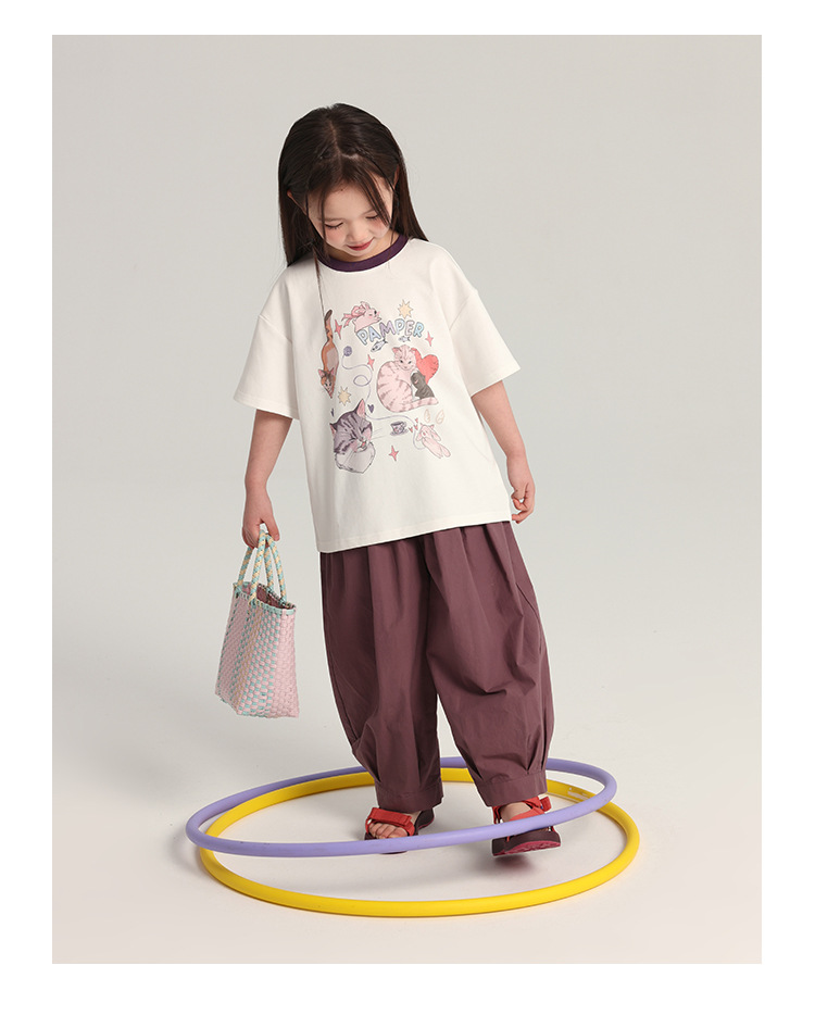 푸딩하루 아동복 만화 프린트 반팔 티셔츠 2026 신상 여아 여름 도파민 라운드넥 베이스 티셔츠