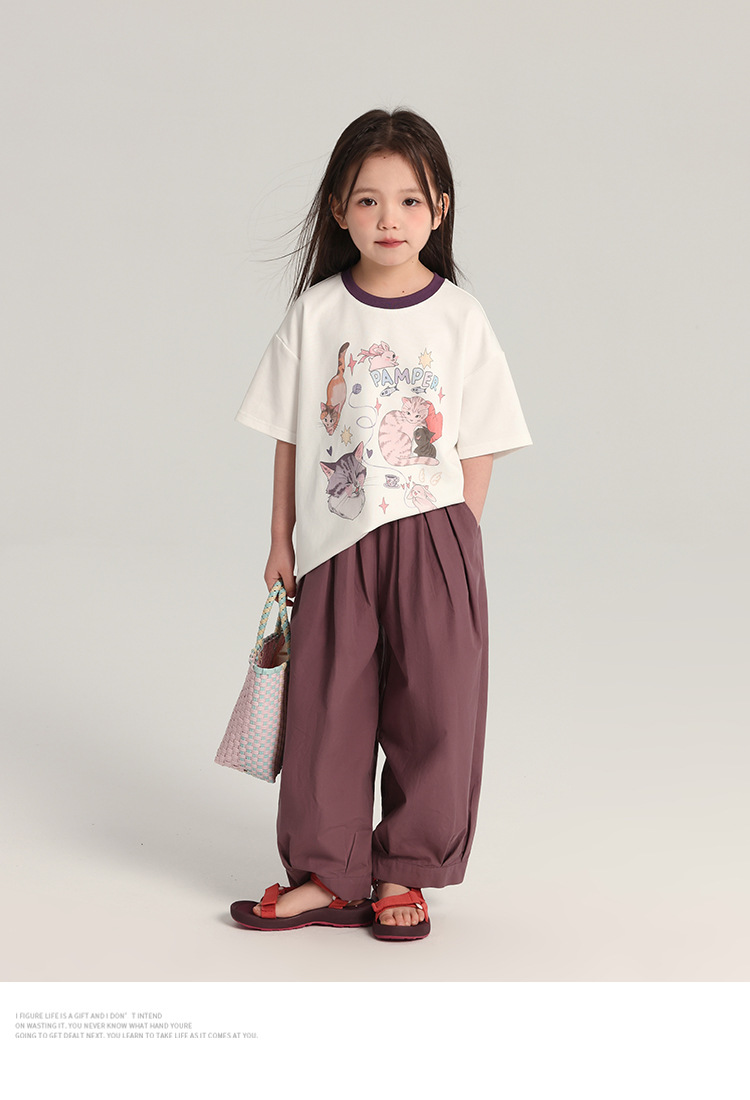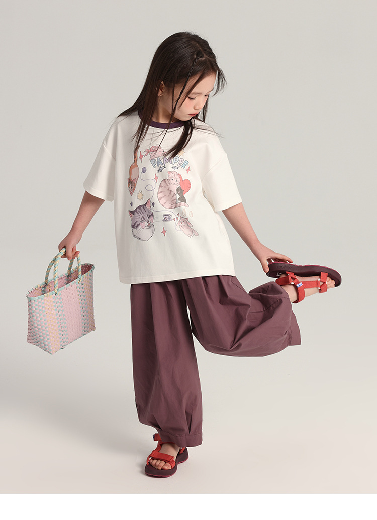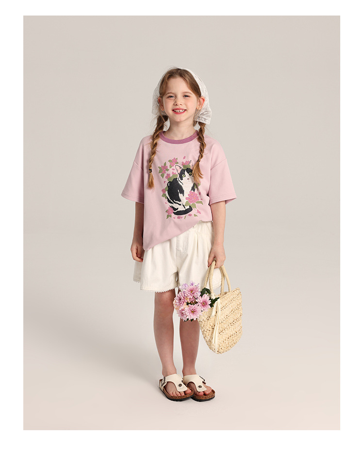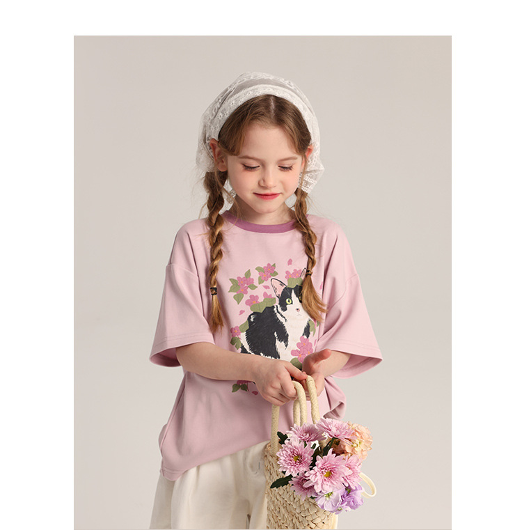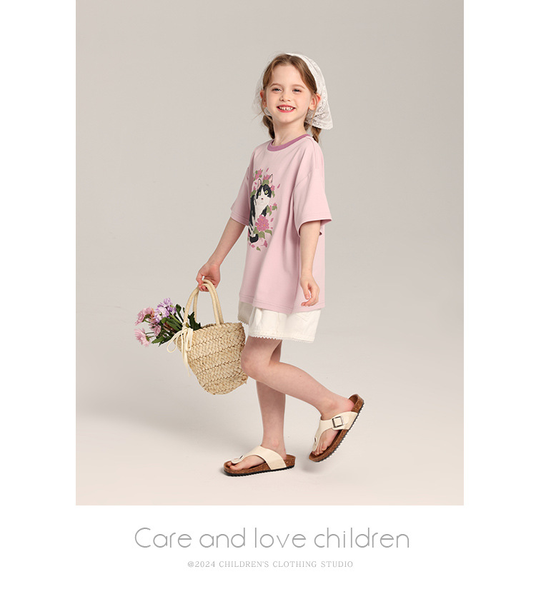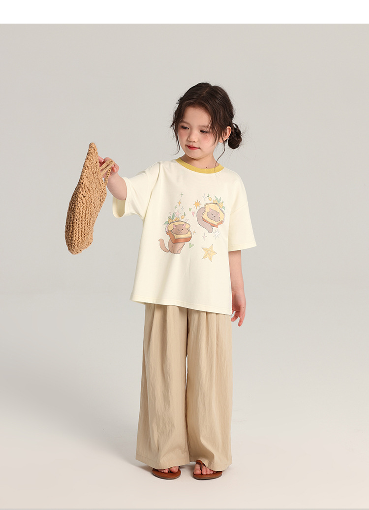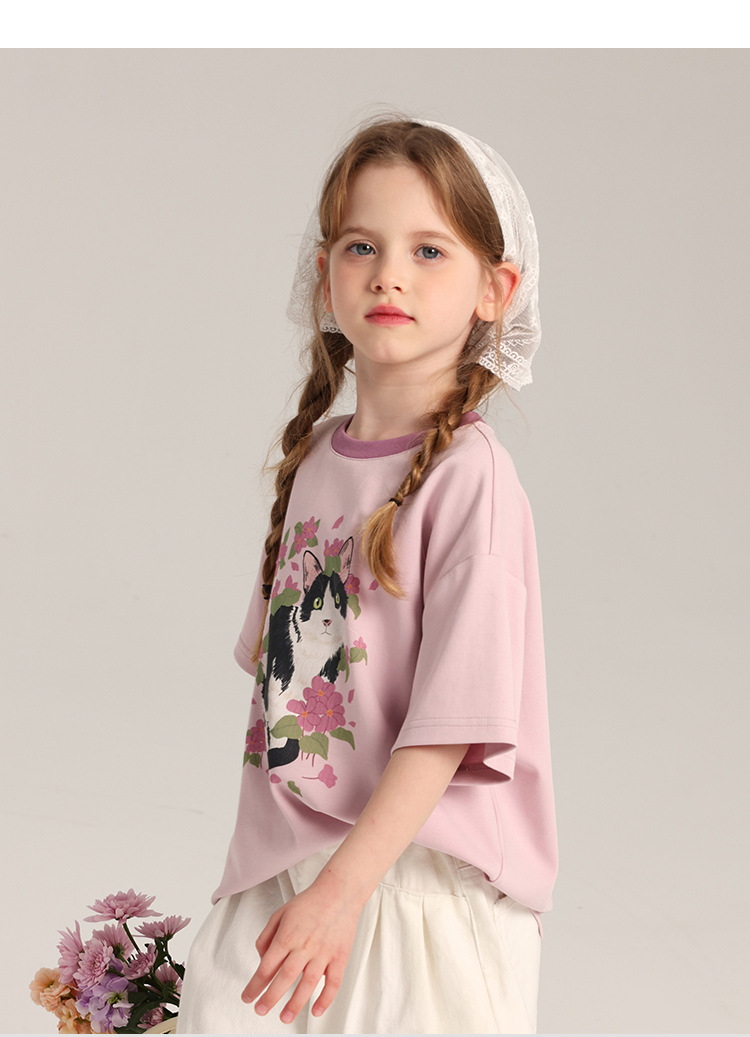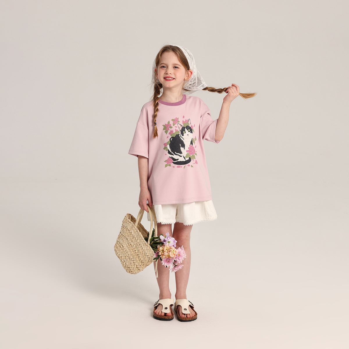 푸딩하루 아동복 만화 프린트 반팔 티셔츠 2026 신상 여아 여름 도파민 라운드넥 베이스 티셔츠