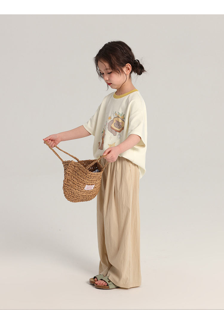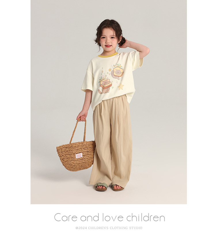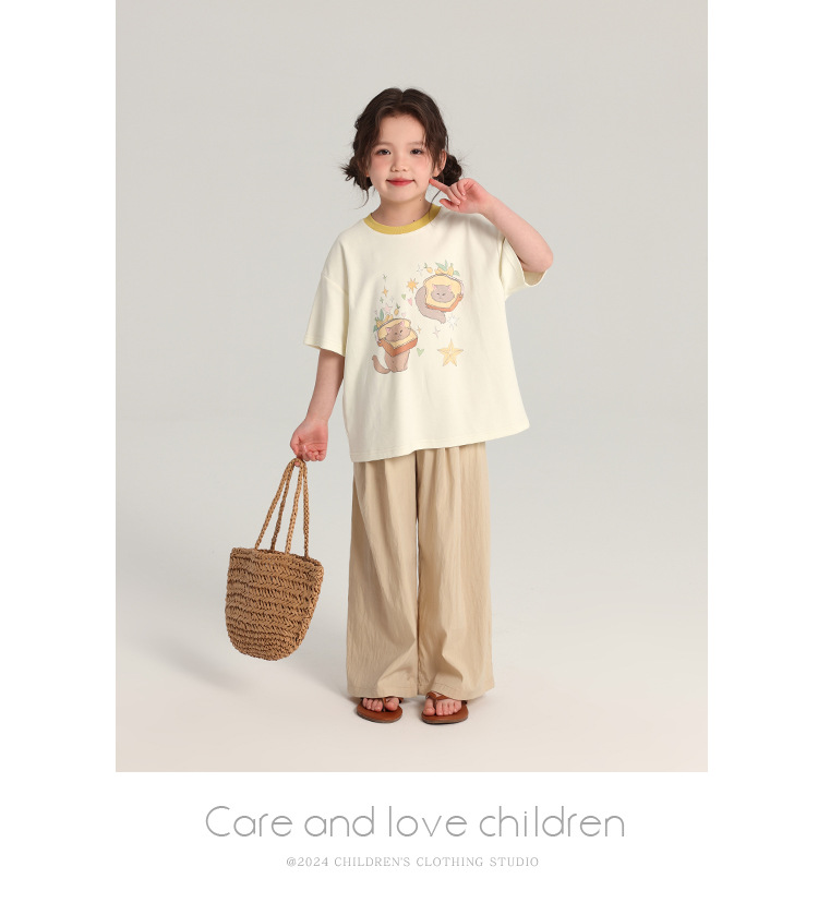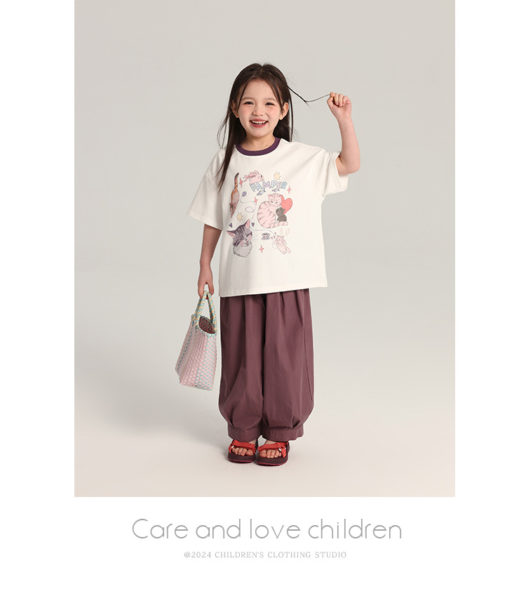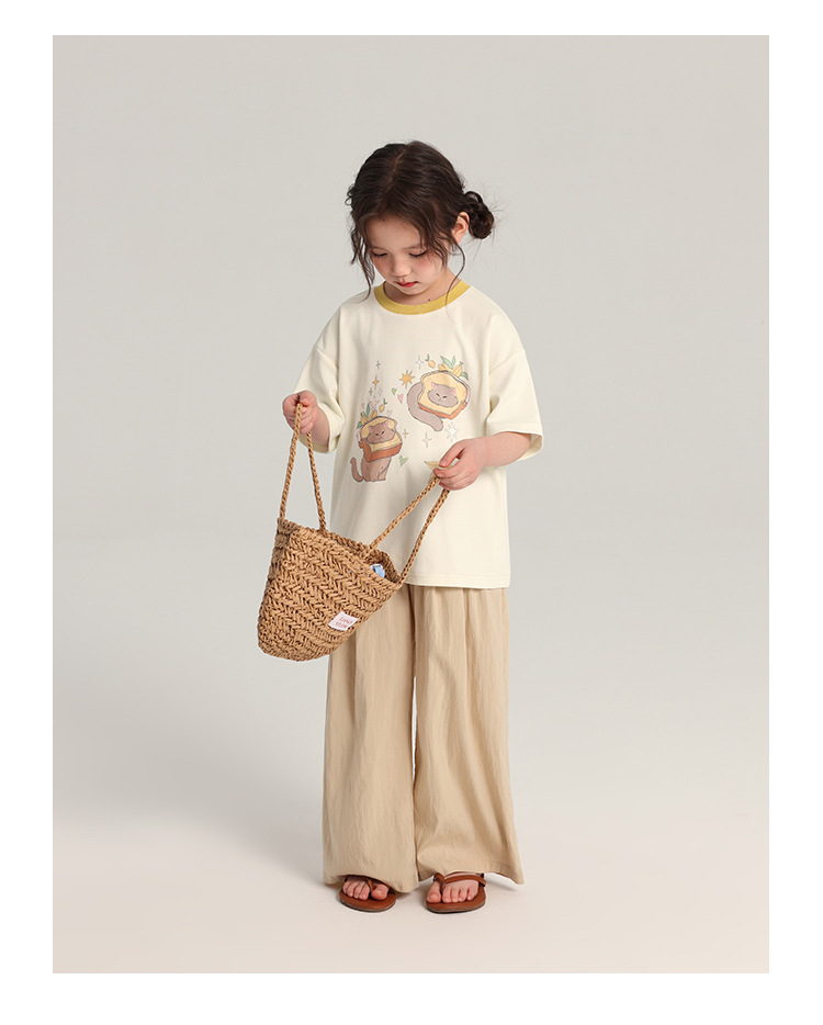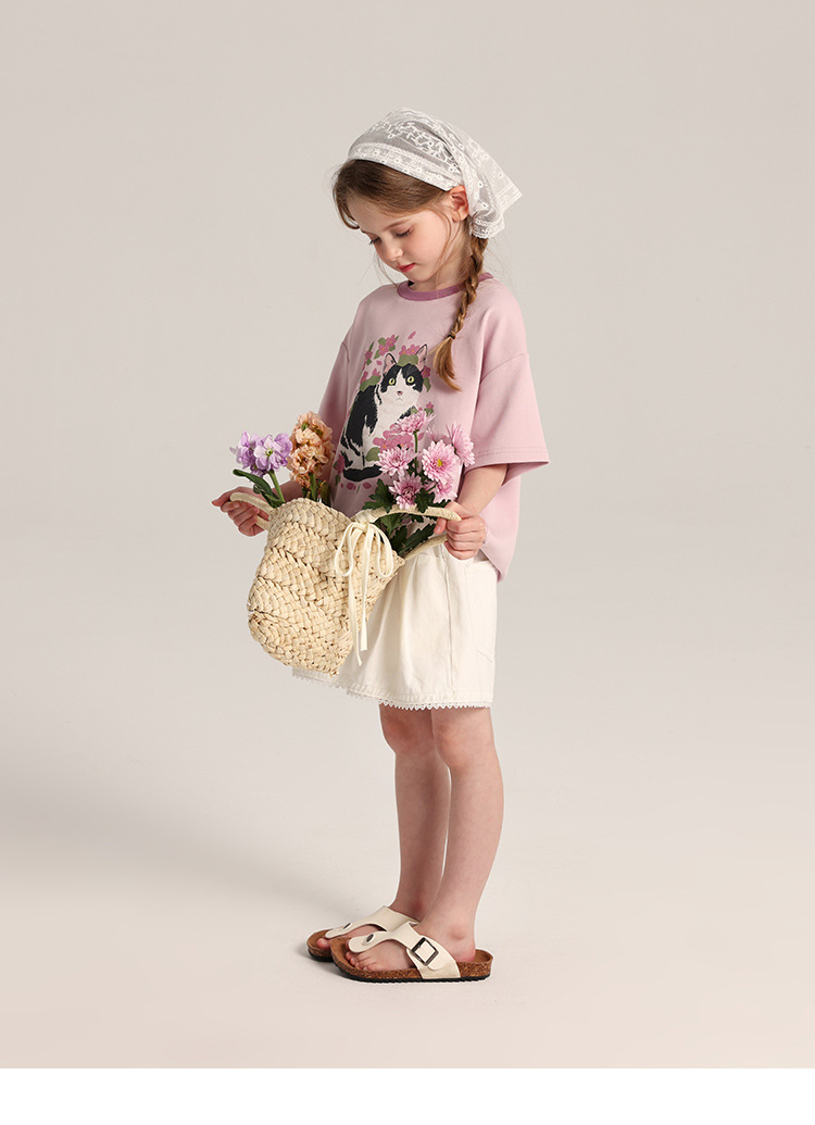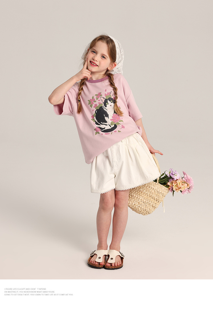 푸딩하루 아동복 만화 프린트 반팔 티셔츠 2026 신상 여아 여름 도파민 라운드넥 베이스 티셔츠