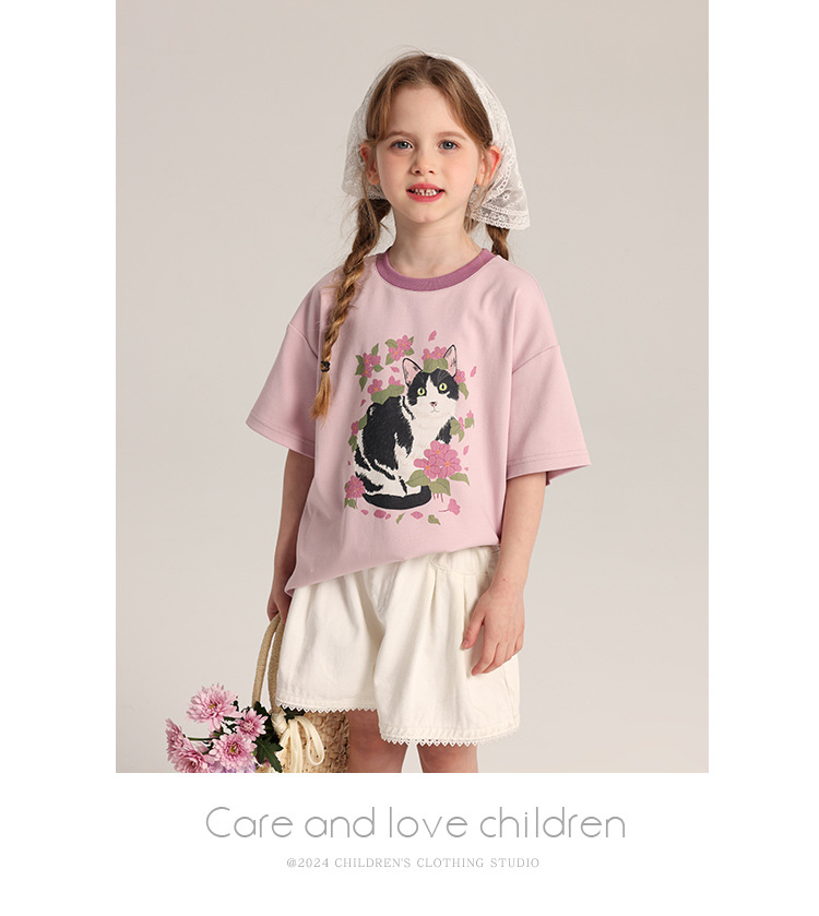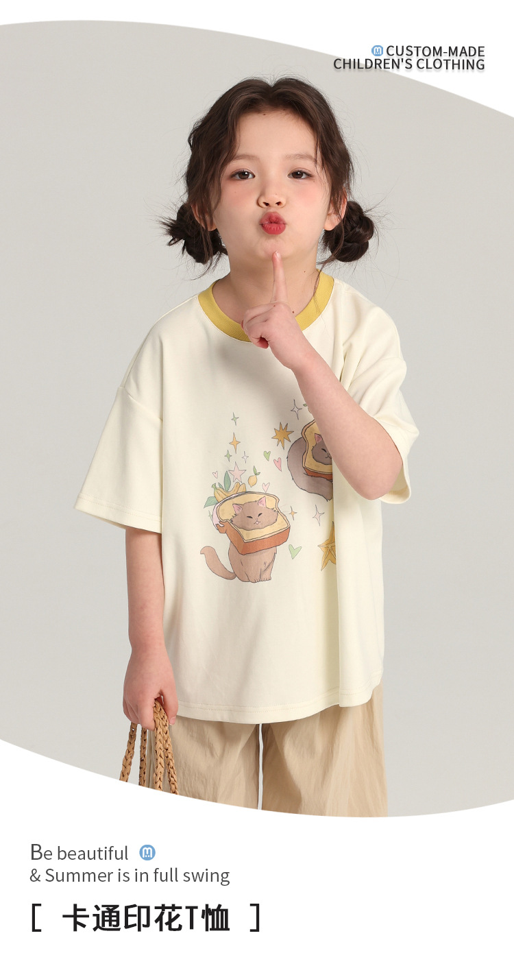 푸딩하루 아동복 만화 프린트 반팔 티셔츠 2026 신상 여아 여름 도파민 라운드넥 베이스 티셔츠스토어 가기