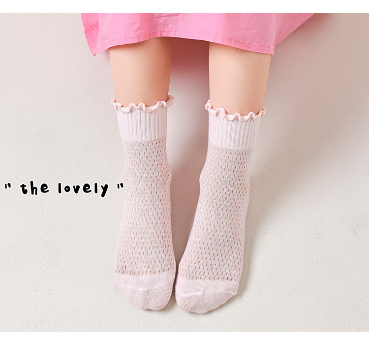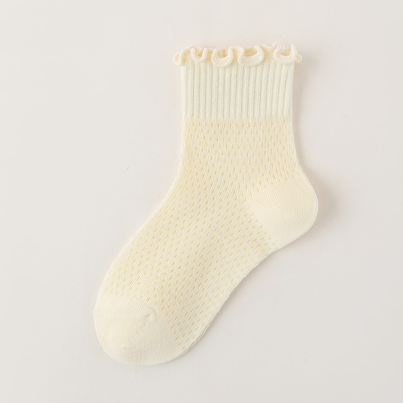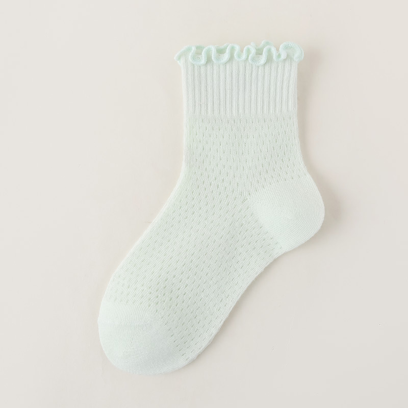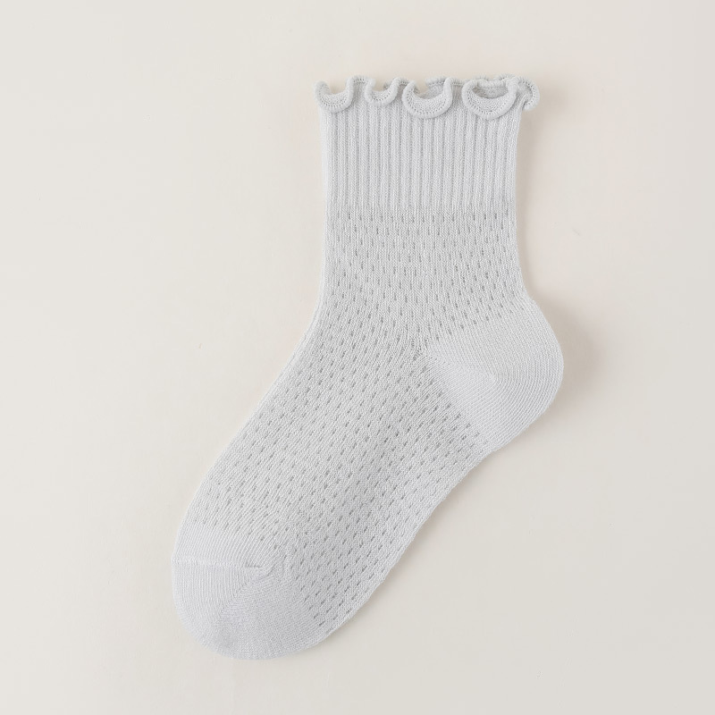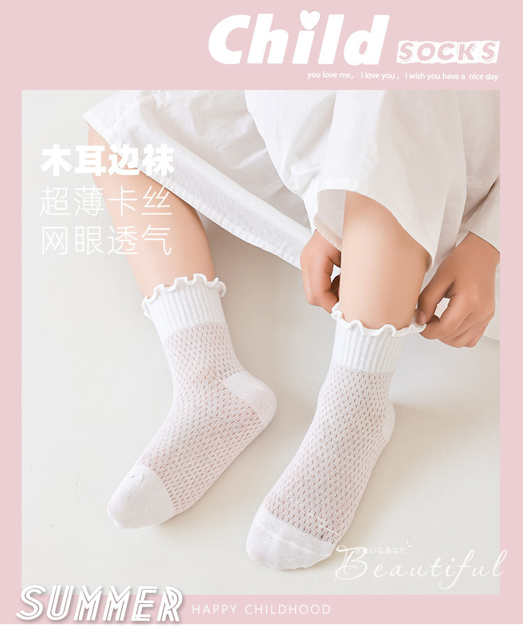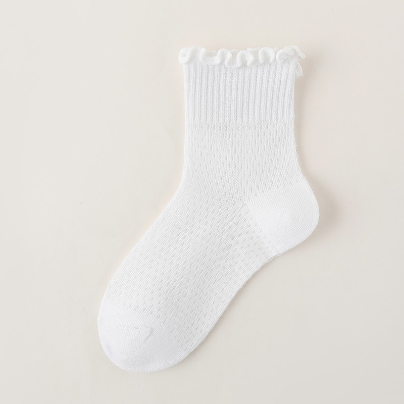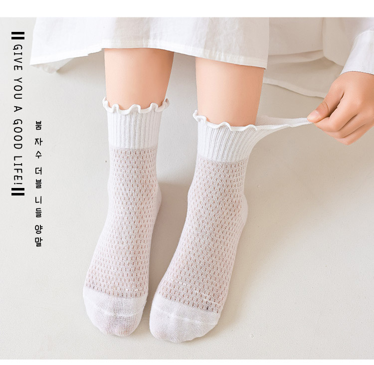 소녀 양말 흰색 나무 귀 양말 여름 초박형 메쉬 통기성 면 양말 한국 단색 양말