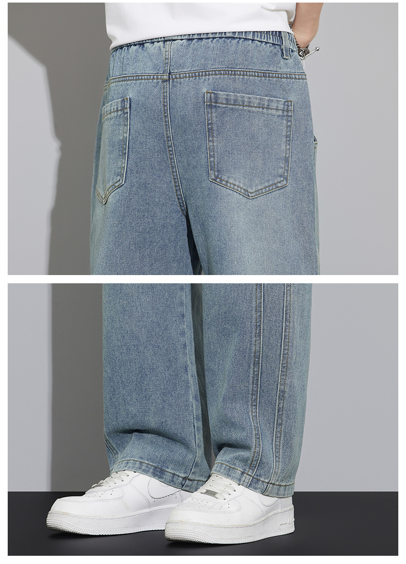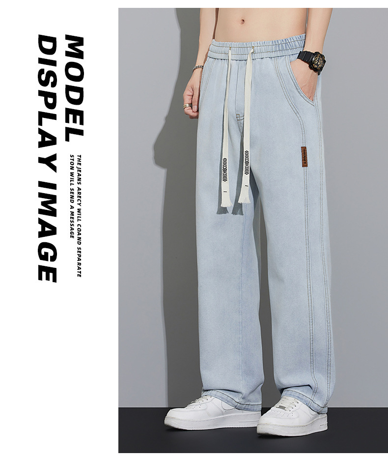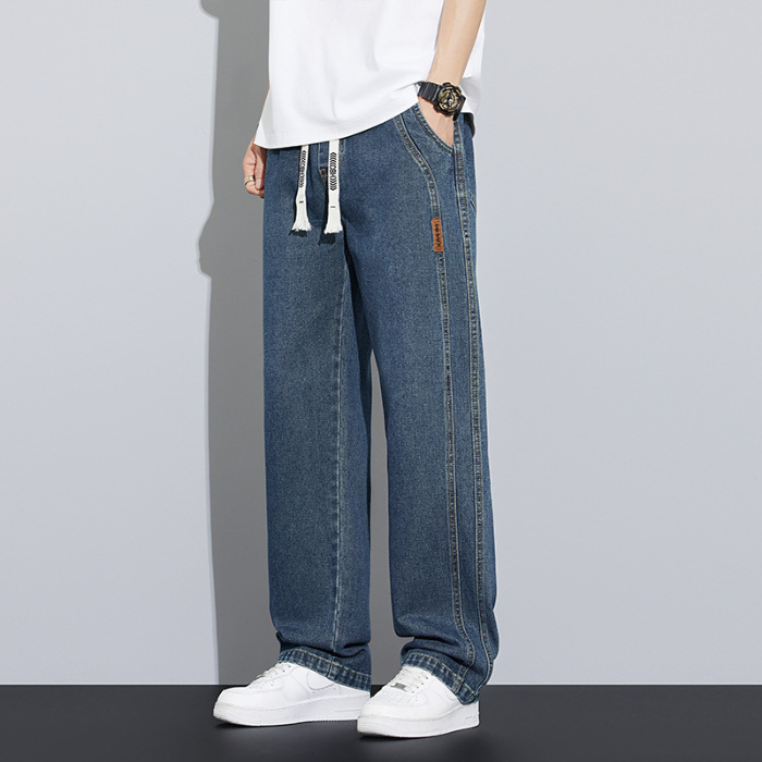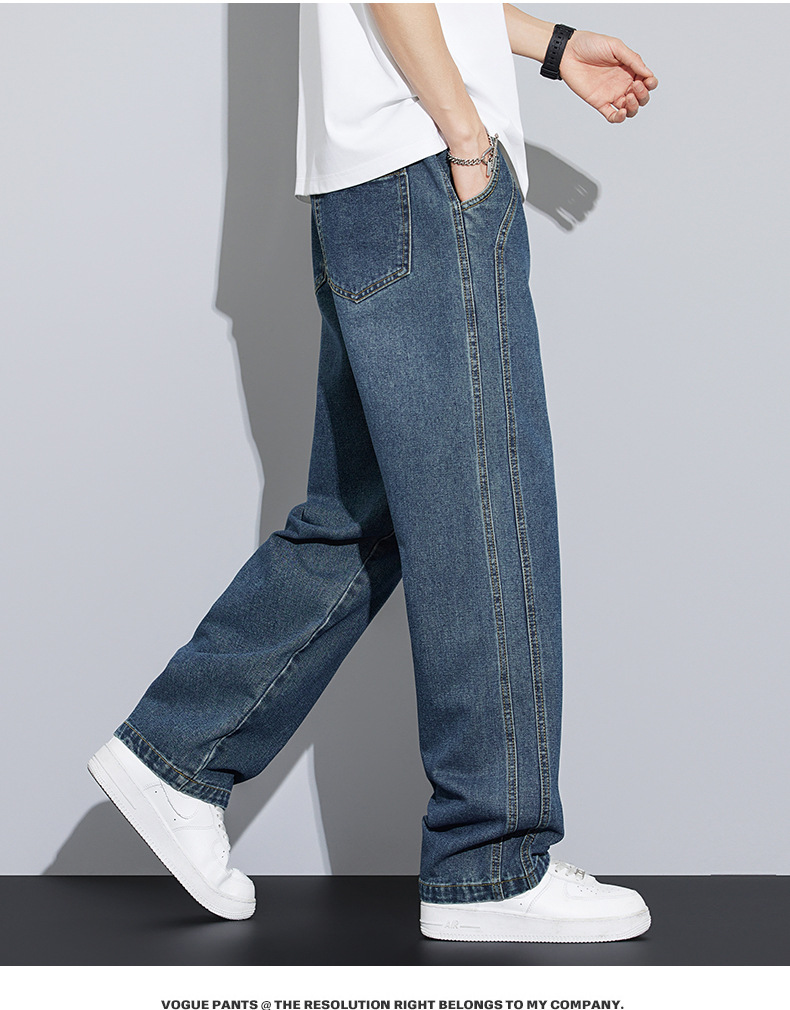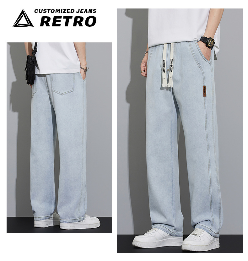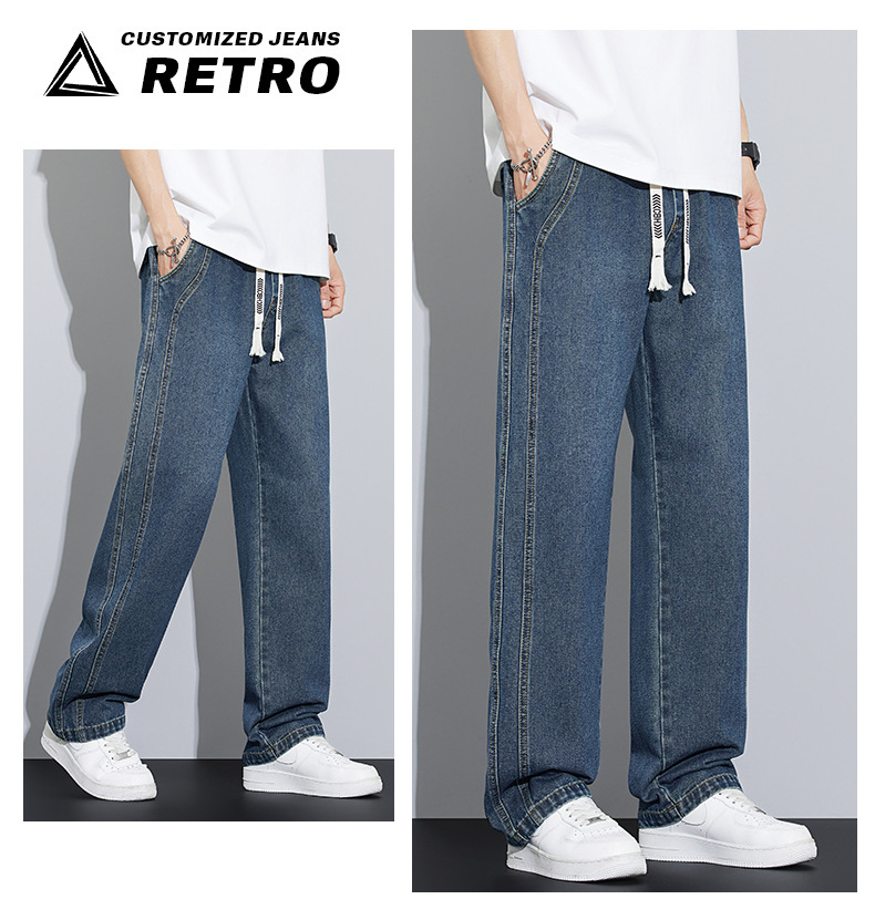 2025 봄과 여름 느슨한 스트레이트 레트로 청바지 남성 와이드 레그 캐주얼 미국 작품 긴 바지
