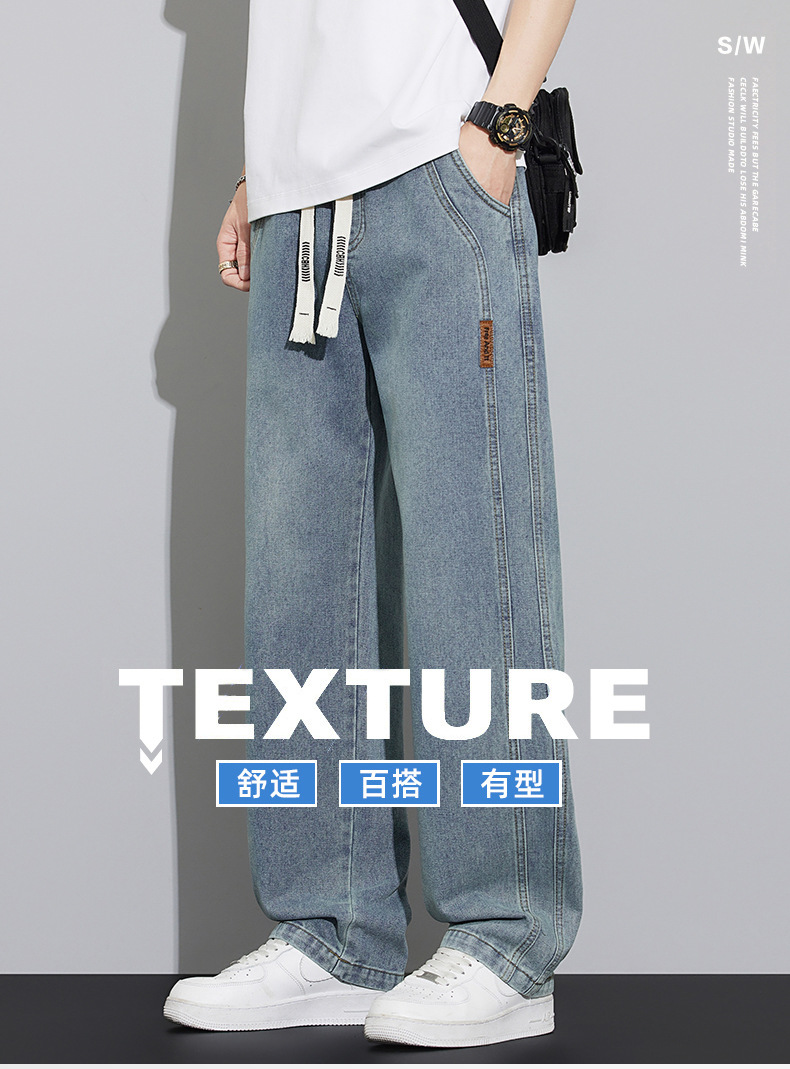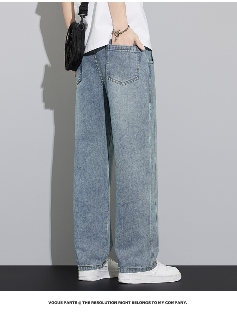 2025 봄과 여름 느슨한 스트레이트 레트로 청바지 남성 와이드 레그 캐주얼 미국 작품 긴 바지스토어 가기