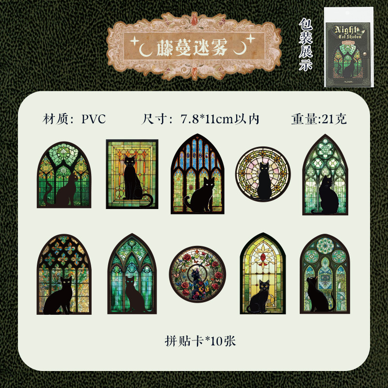 언어 레저 PVC 콜라주 카드 어두운 밤 고양이 그림자 시리즈 창조적 인 방수 조커 소재 손 계정 구 메이 DIY 장식 카드