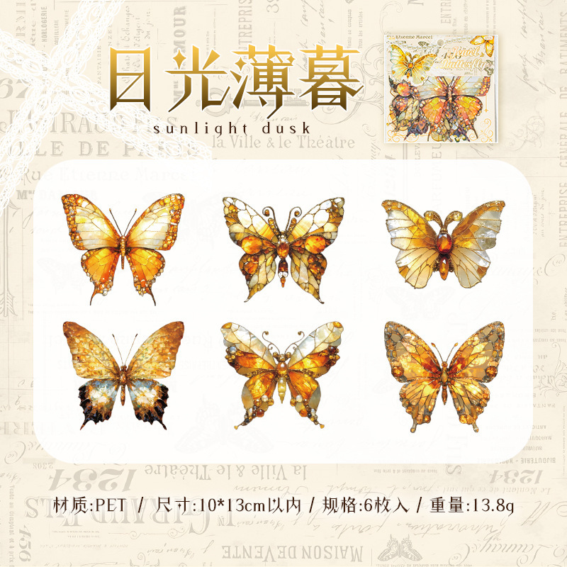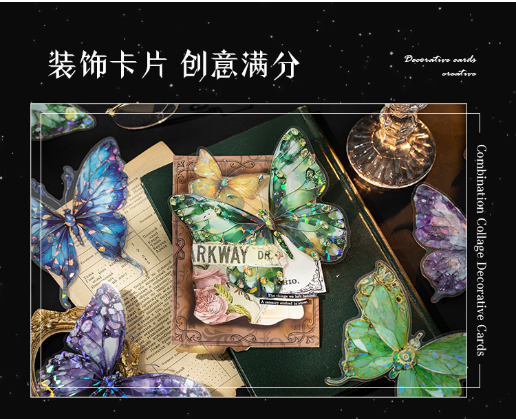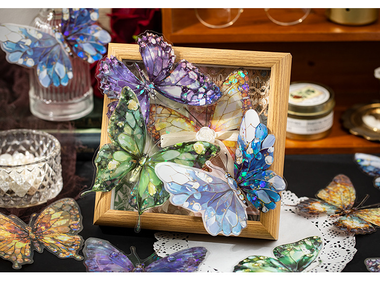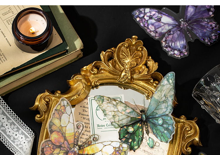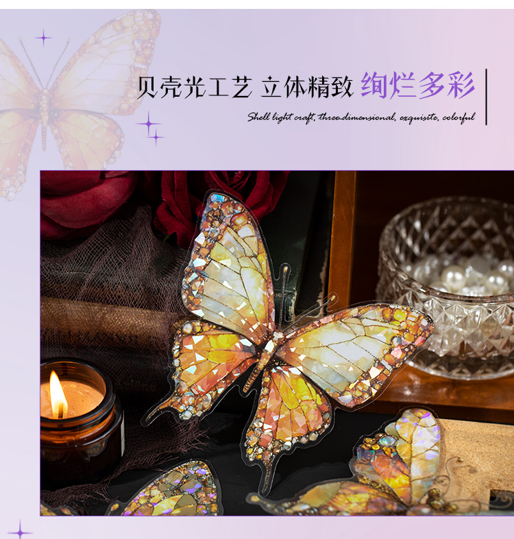 언어 유휴 애완 동물 쉘 라이트 스티커 가방 나비 날개 징후이 시리즈 나비 테마 소재 손 계정 diy goo 카드 콜라주