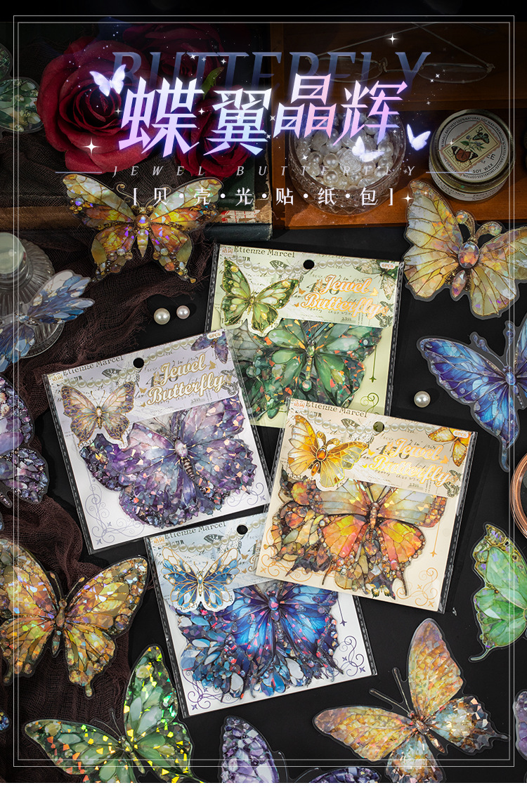언어 유휴 애완 동물 쉘 라이트 스티커 가방 나비 날개 징후이 시리즈 나비 테마 소재 손 계정 diy goo 카드 콜라주스토어 가기
