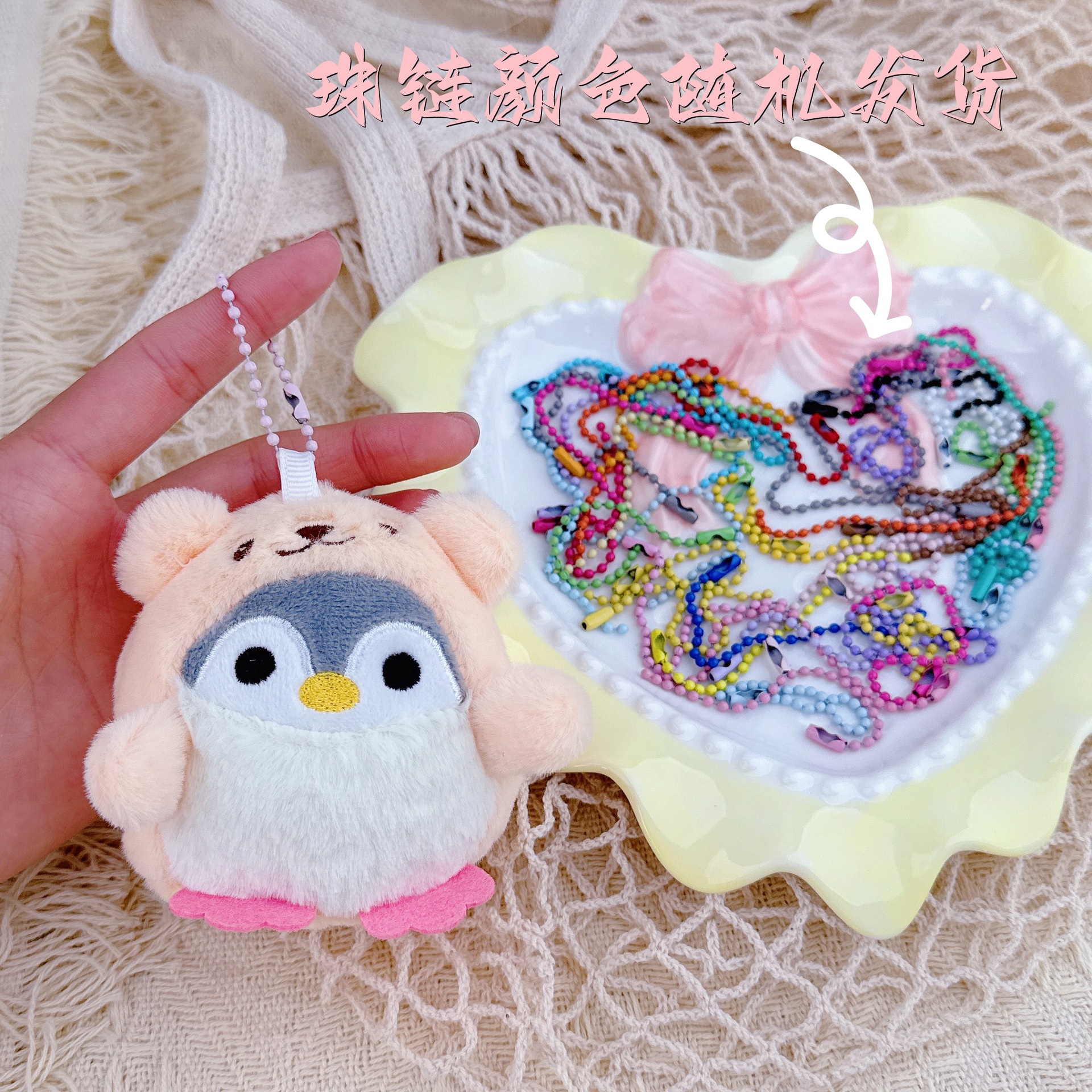 • 핑크 여장 펭귄 + 랜덤 컬러 비즈 체인