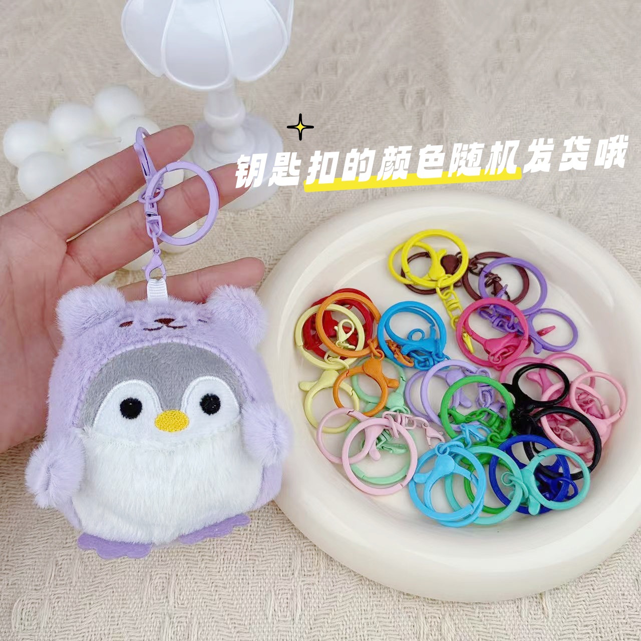 • 보라색 여장 펭귄 + 임의 색상의 열쇠고리