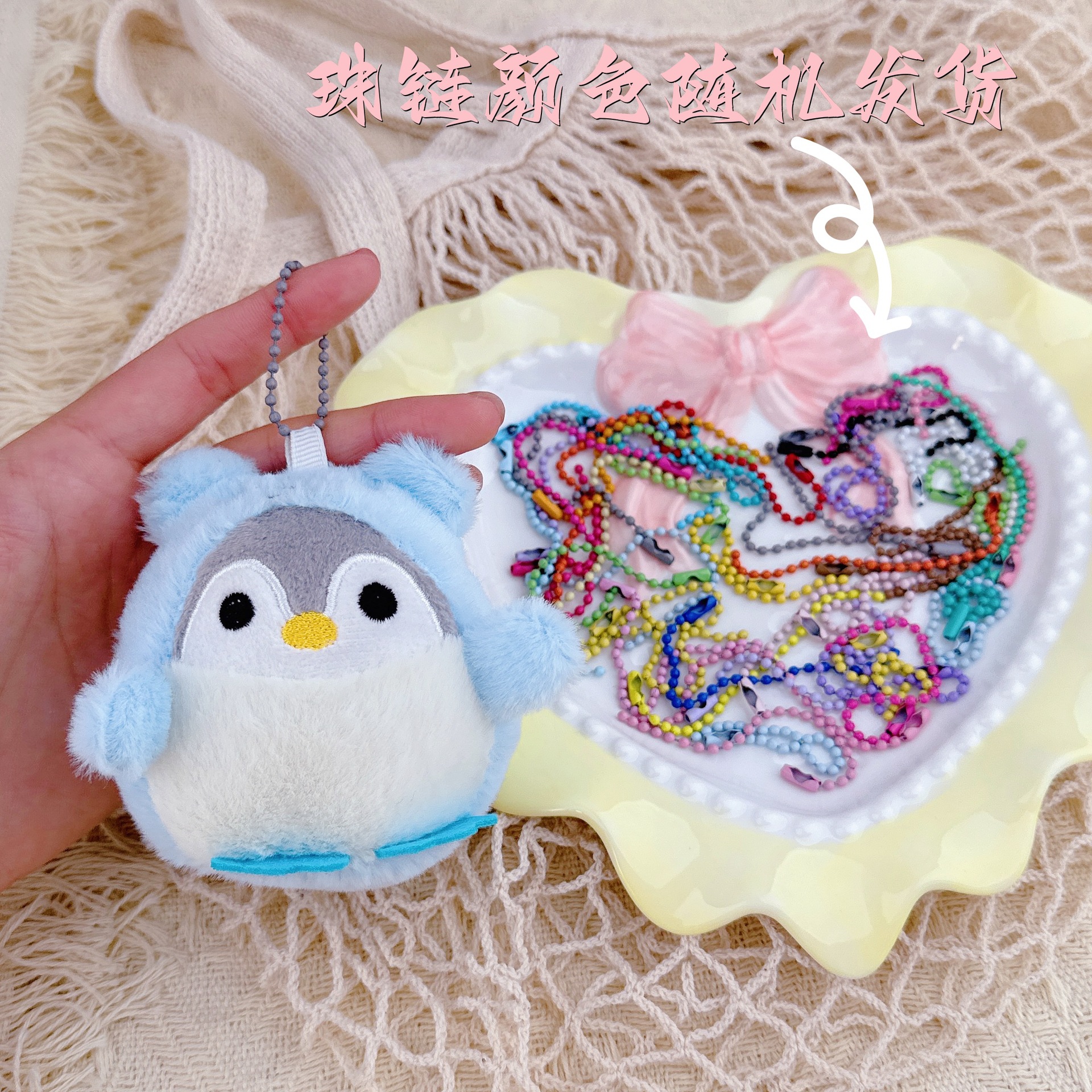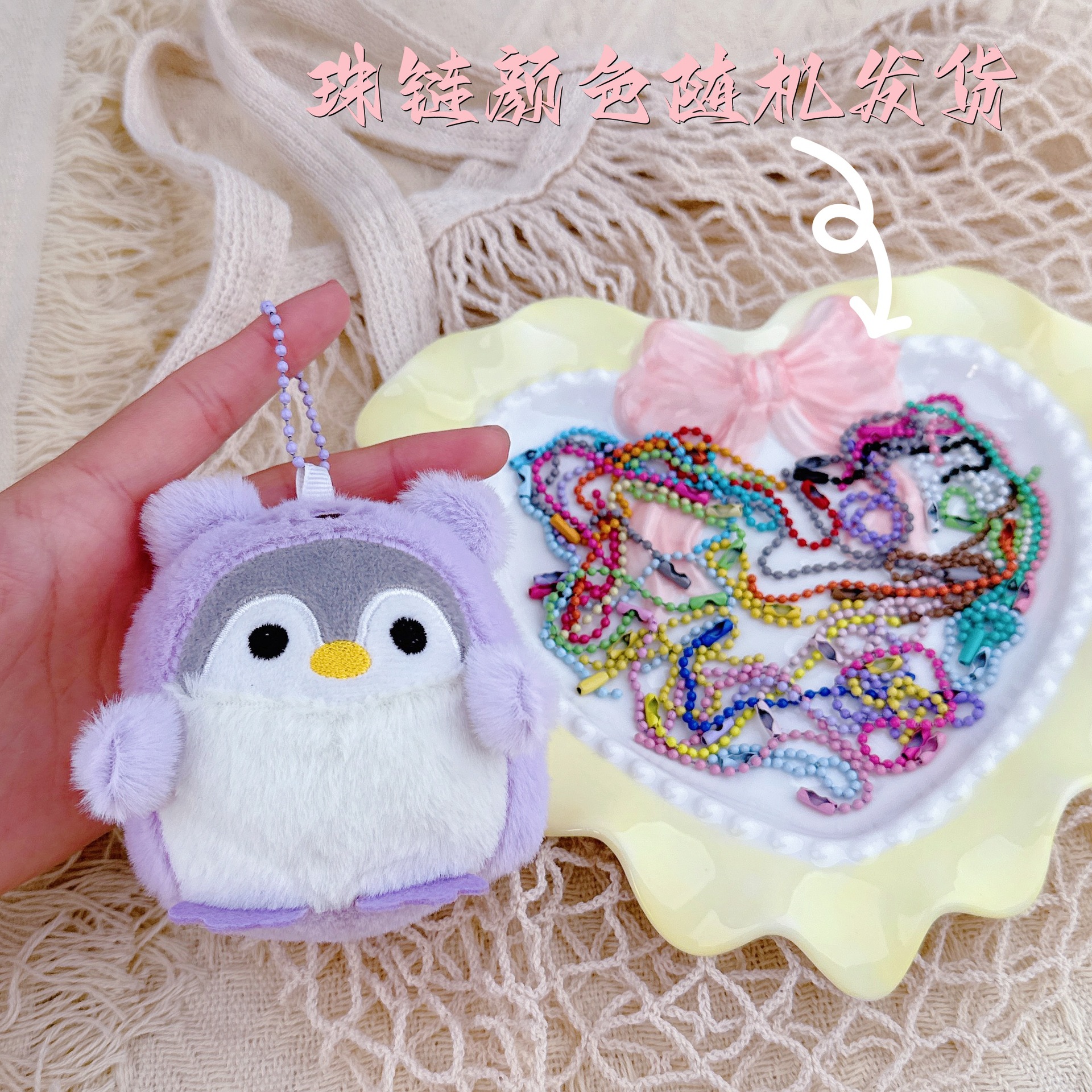 • 보라색 여장 펭귄 + 임의 색상의 구슬 체인