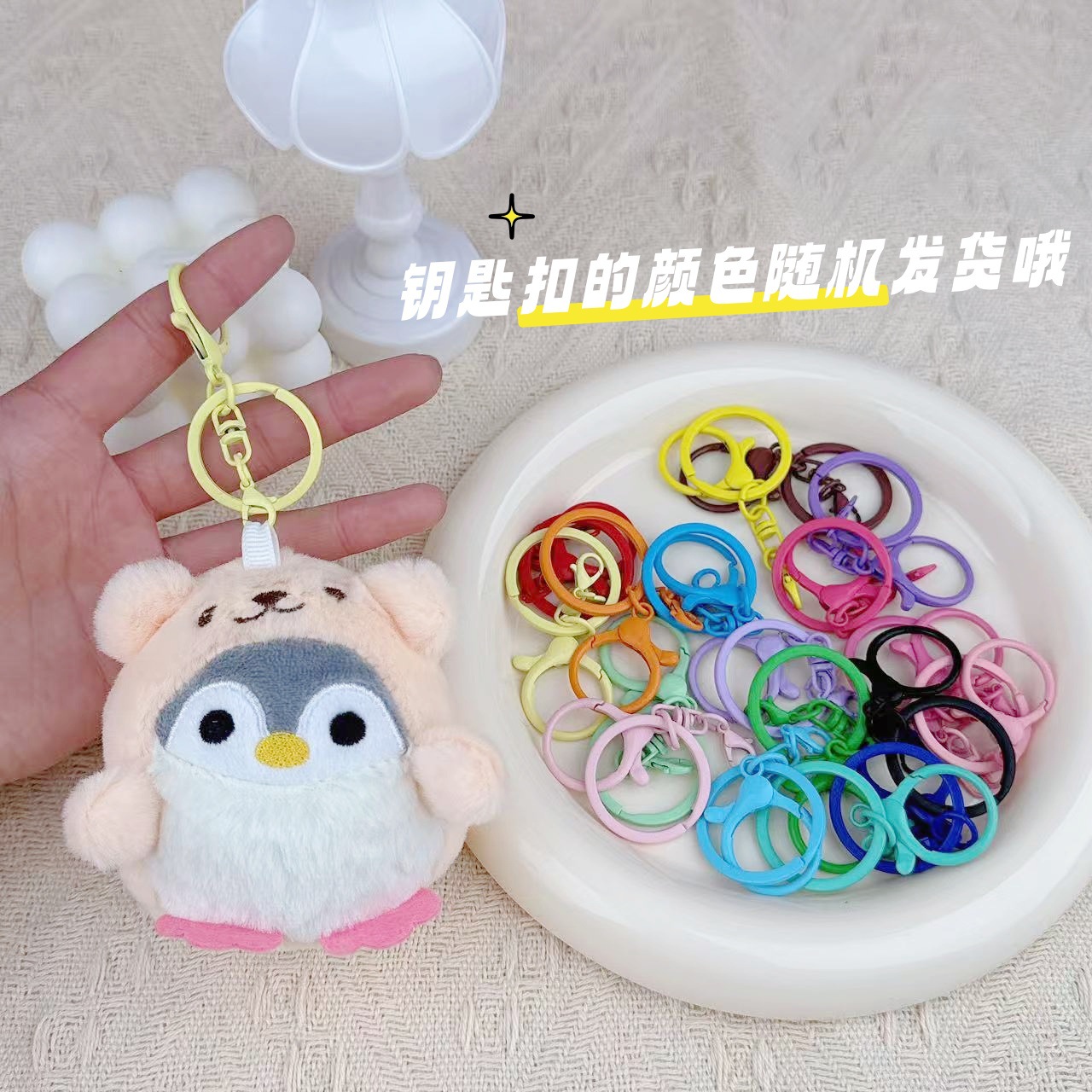 • 핑크 여장 펭귄 + 임의 색상의 열쇠고리