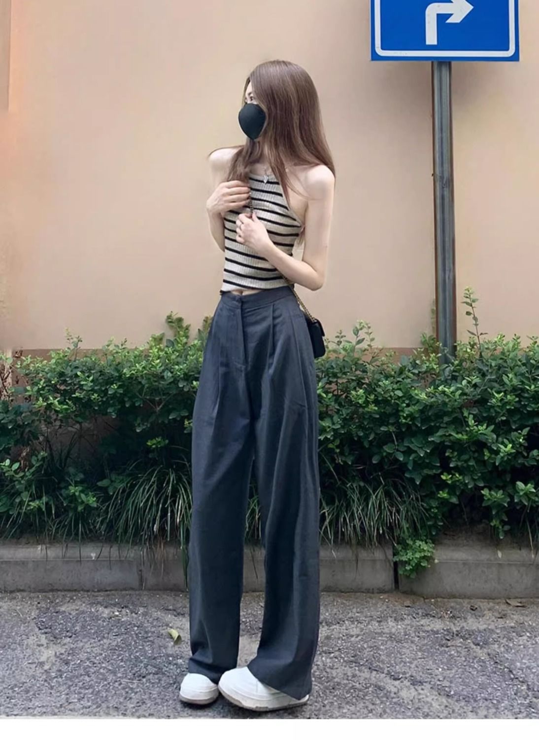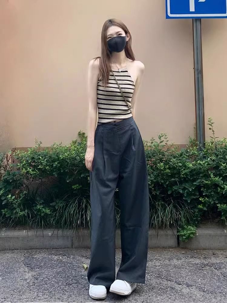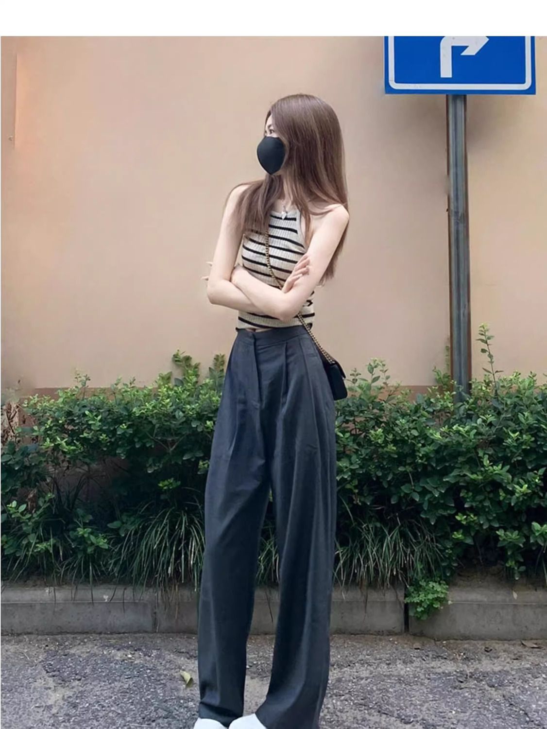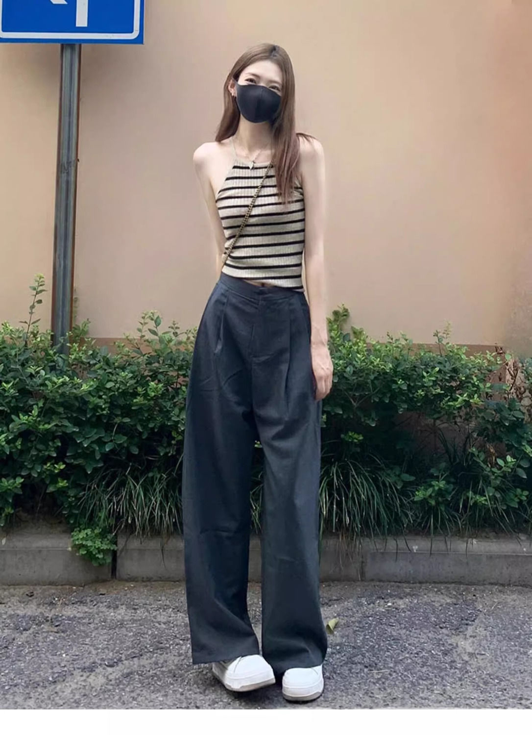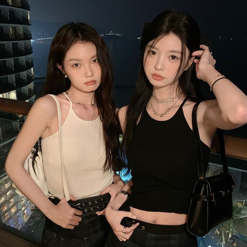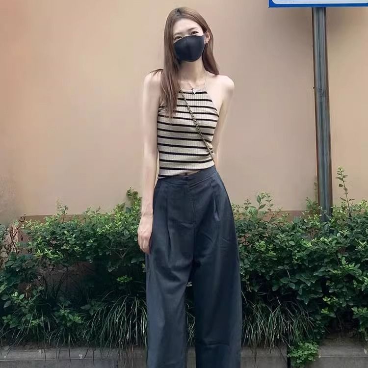 여름 줄무늬 대조적 인 색상 목 교수형 스트랩 민소매 조끼 여성 내복 아름다운 백 스파이스 소녀 짧은 아이스 실크 니트 탑
