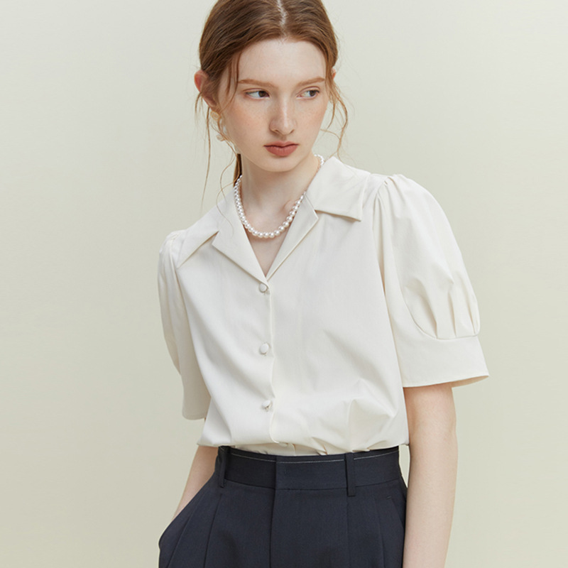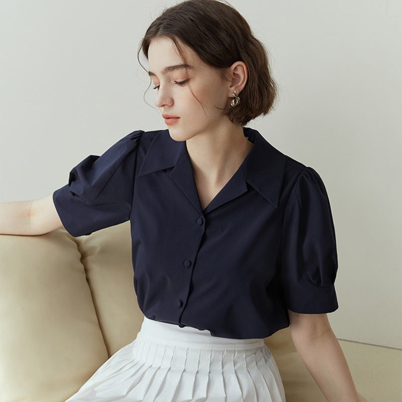 Net Figure Niche 디자인 센스 V 넥 반팔 셔츠 여성용 여름 새로운 2023 하이 엔드 센스 루즈 슬리밍 탑스토어 가기
