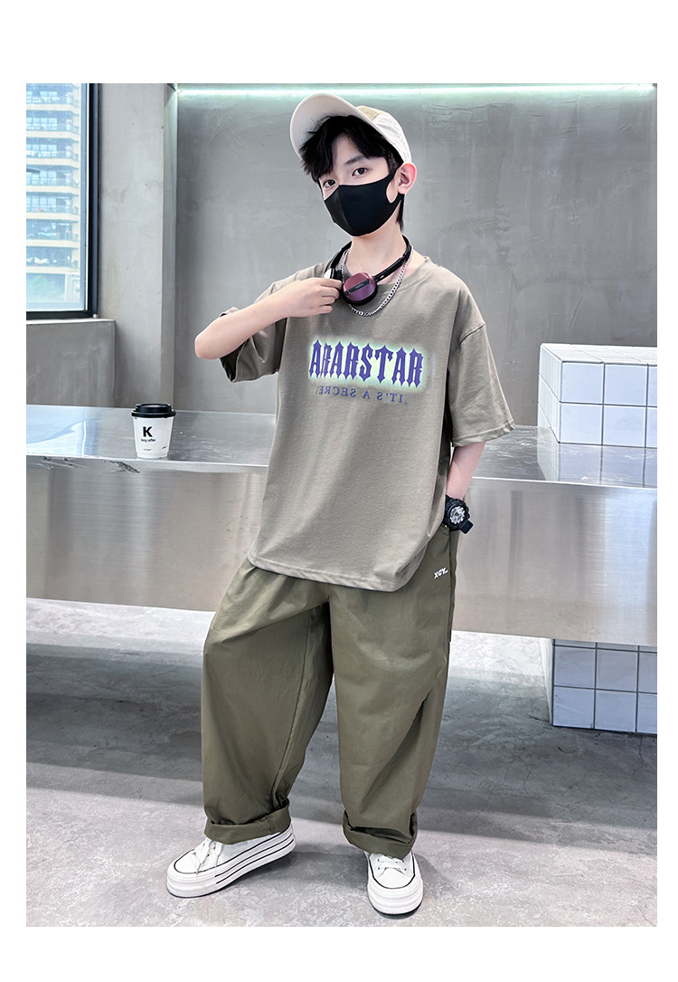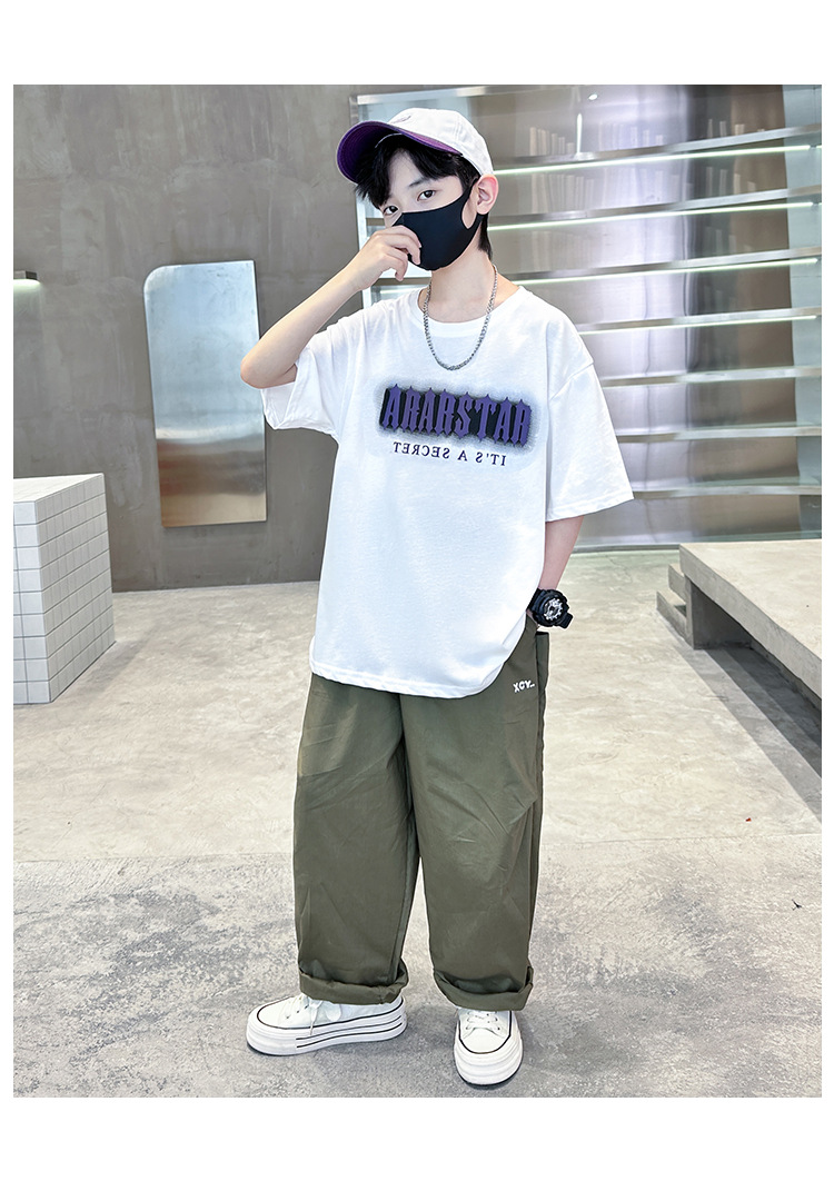남자들의 여름 반팔 세트 2025 새로운 도착 CUHK 어린이 여름 소년 스포츠 잘 생긴 유행 투피스 세트스토어 가기