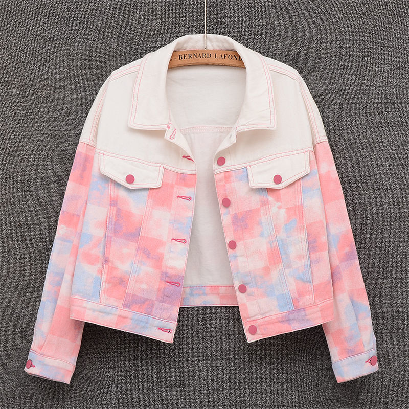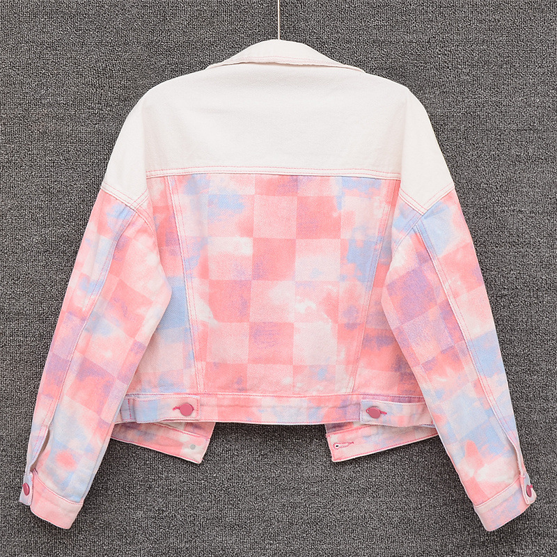 서양식 격자 무늬 컬러 매칭 데님 코트 여성 봄웨어 2025 새로운 폭발 한국식 인터넷 Celebant TikTok Jeans