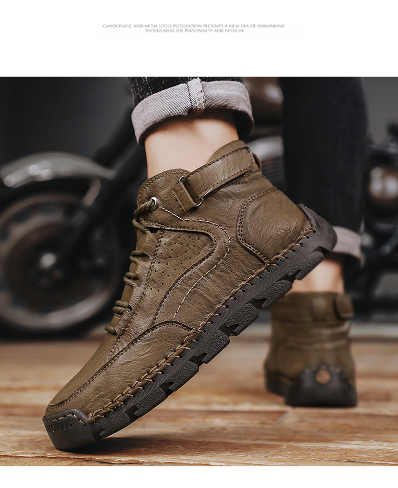 남성 가죽 장화를 플러스 사이즈 국경 간 폭발 남성 패션 수제 스티치 발목 부츠 플랫 레이스 업 캐주얼 신발