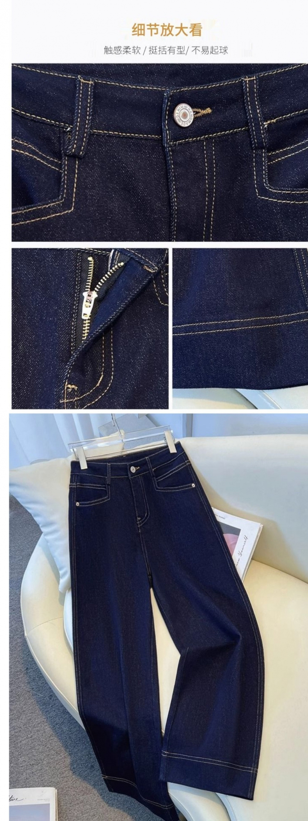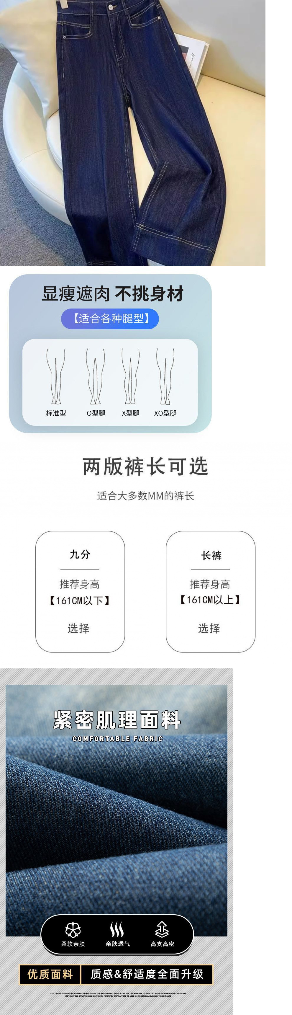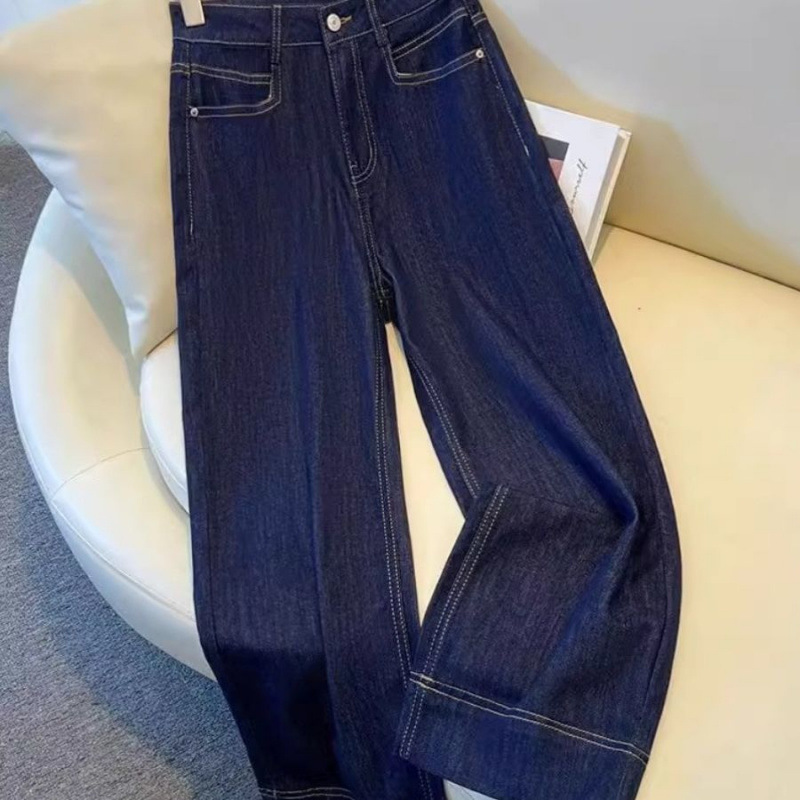 새로운 데님 넓은 다리 바지 여성용 봄과 가을 2025 작은 슬림 핏 루즈 레트로 어린이를위한 두꺼운 말굽 바지스토어 가기